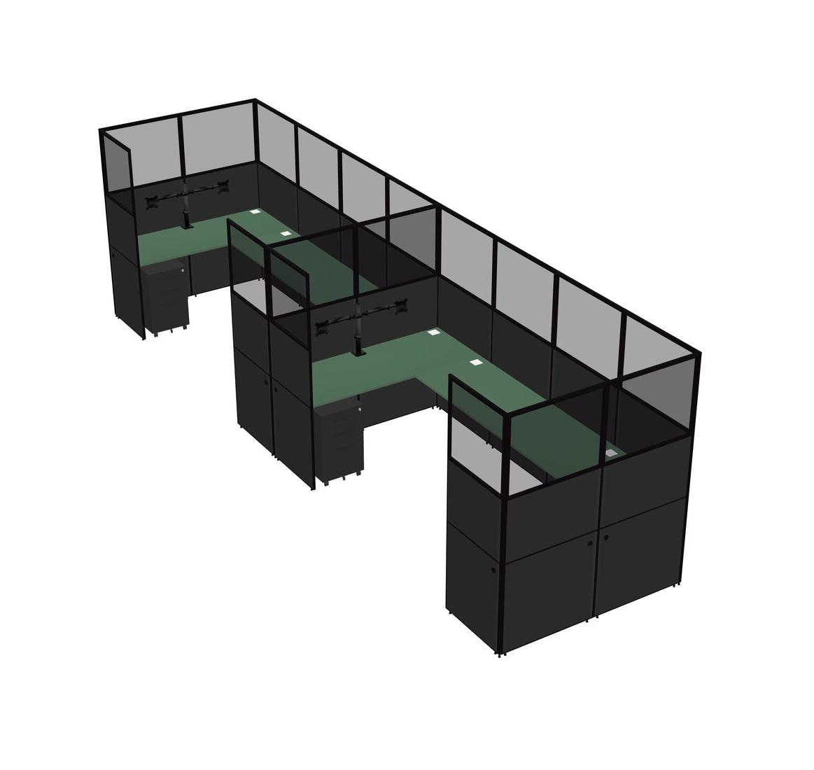 Système De Panneaux En U Vert Pour 2 Personnes + Bras De Moniteur (bras Doubles) + Tiroirs Mobiles En Métal Pour 2 Utilisateur(s)