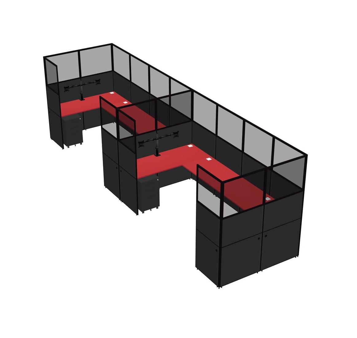 Système De Panneau En U Prism Red Pour 2 Personnes + Bras D'écran (bras Doubles) + Tiroirs Mobiles En Métal Pour 2 Utilisateur(s)