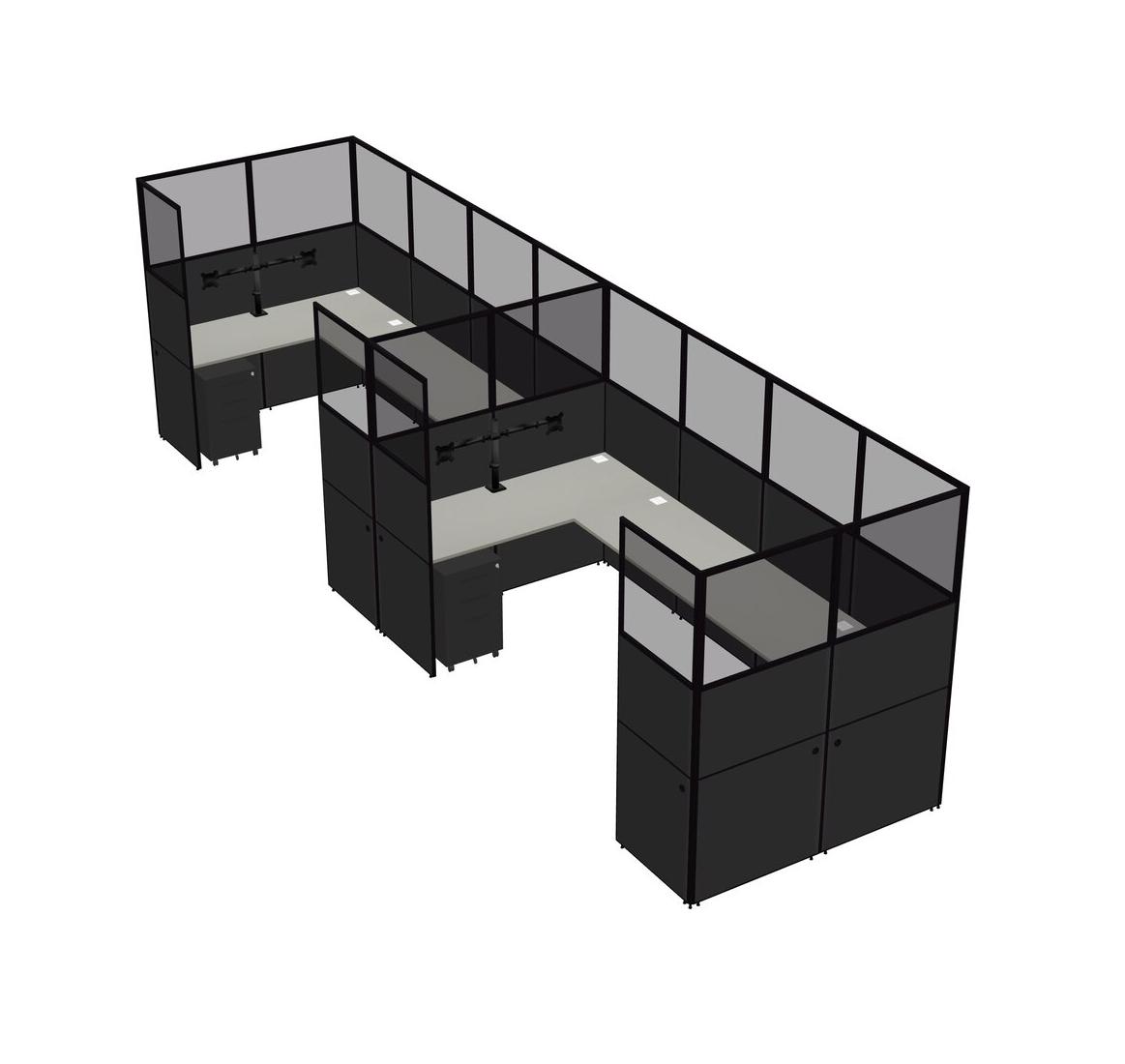 Système De Panneaux En U Grey Shadows Pour 2 Personnes + Bras D'écran (bras Doubles) + Tiroirs Mobiles En Métal Pour 2 Utilisateur(s)