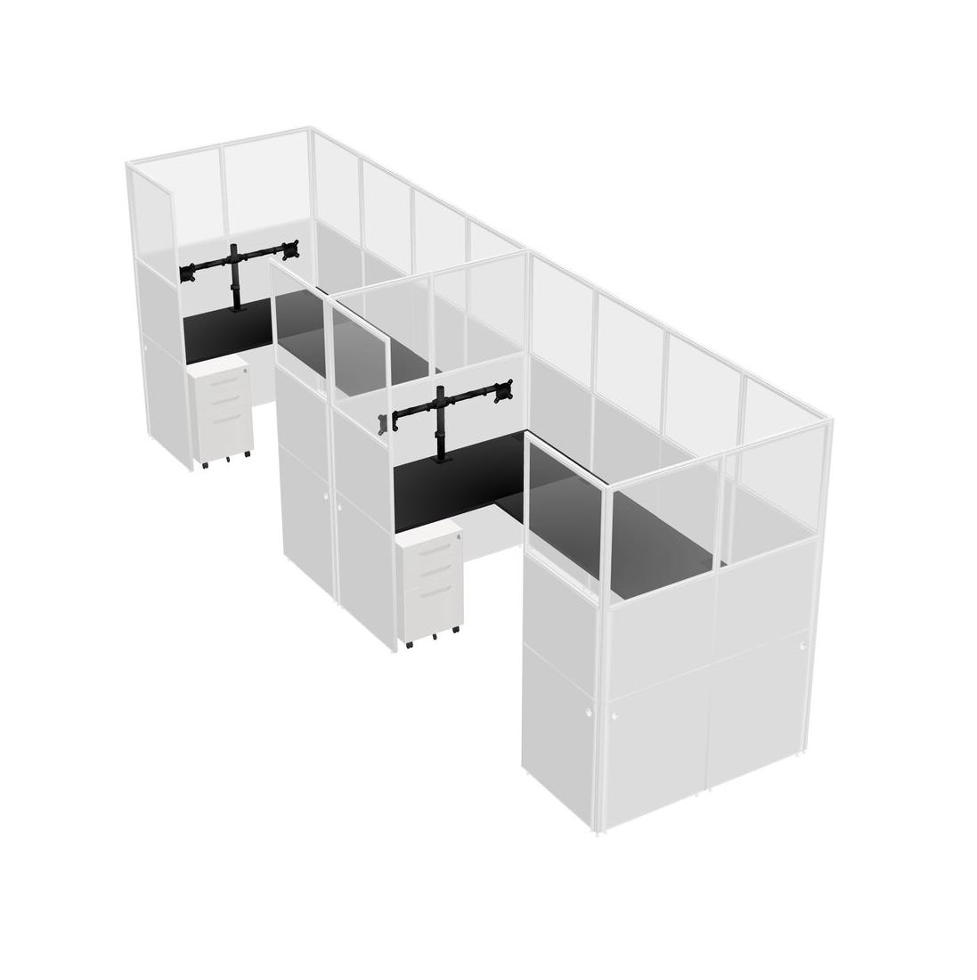 Système De Panneaux En U Noir Pour 2 Personnes + Bras D'écran (bras Doubles) + Tiroirs Mobiles En Métal Pour 2 Utilisateur(s)
