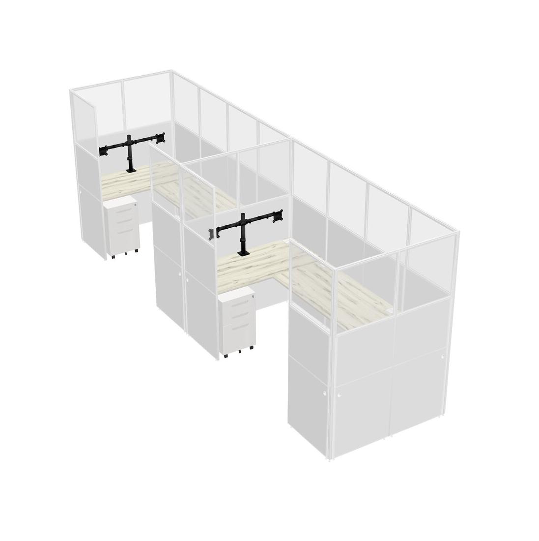 Système De Panneaux En U Heinne Holz Pour 2 Personnes + Bras D'écran (bras Doubles) + Tiroirs Mobiles En Métal Pour 2 Utilisateur(s)