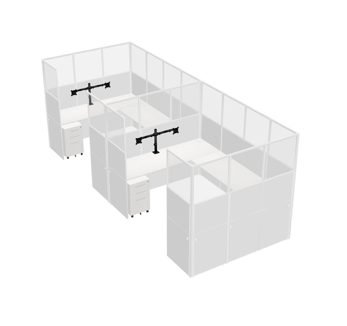 Système De Panneaux En U Blanc Pour 2 Personnes + Bras D'écran (bras Doubles) + Tiroirs Mobiles En Métal Pour 2 Utilisateurs