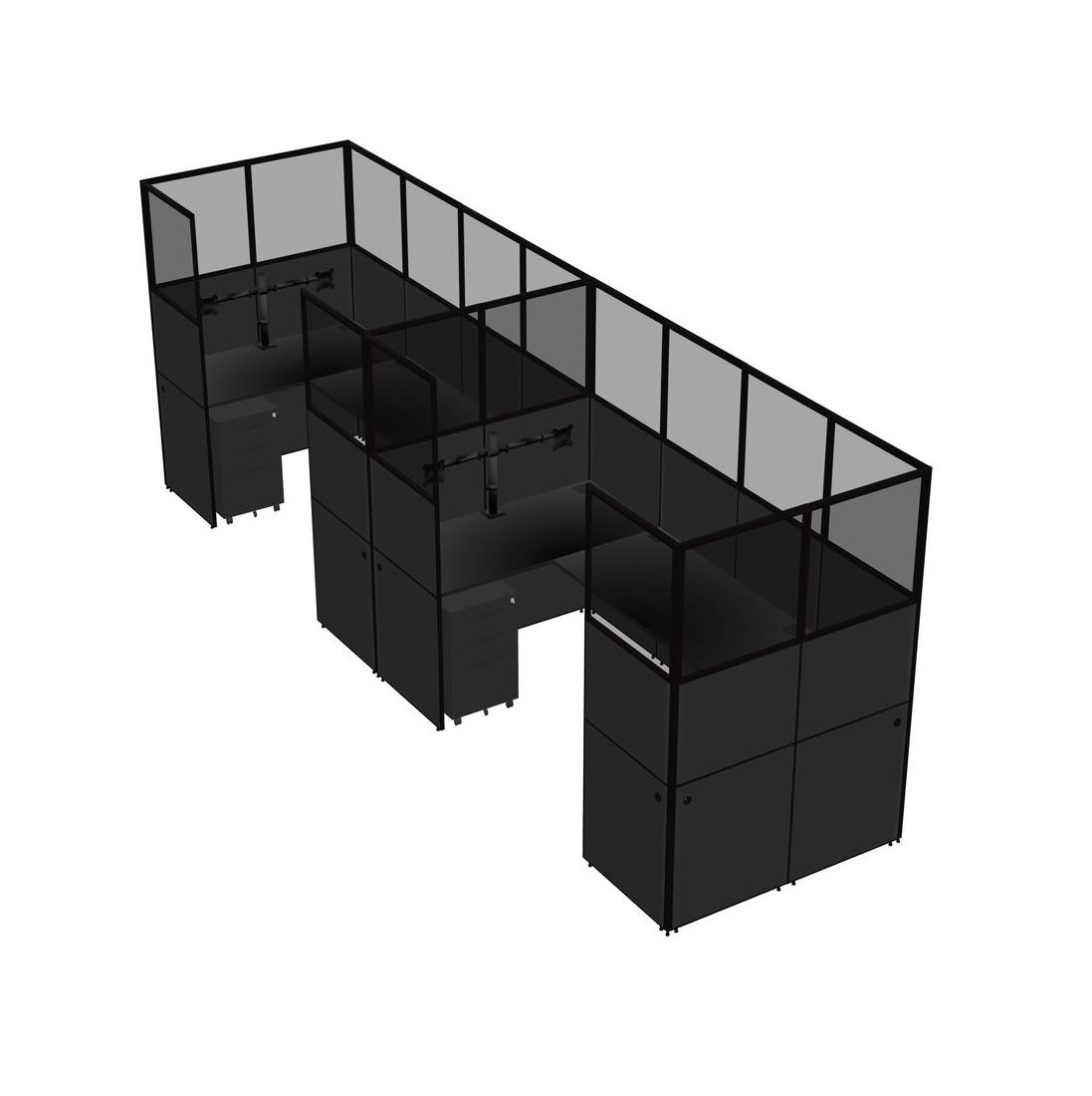 Système De Panneaux En U Noir Pour 2 Personnes + Bras D'écran (bras Doubles) + Tiroirs Mobiles En Métal Pour 2 Utilisateur(s)