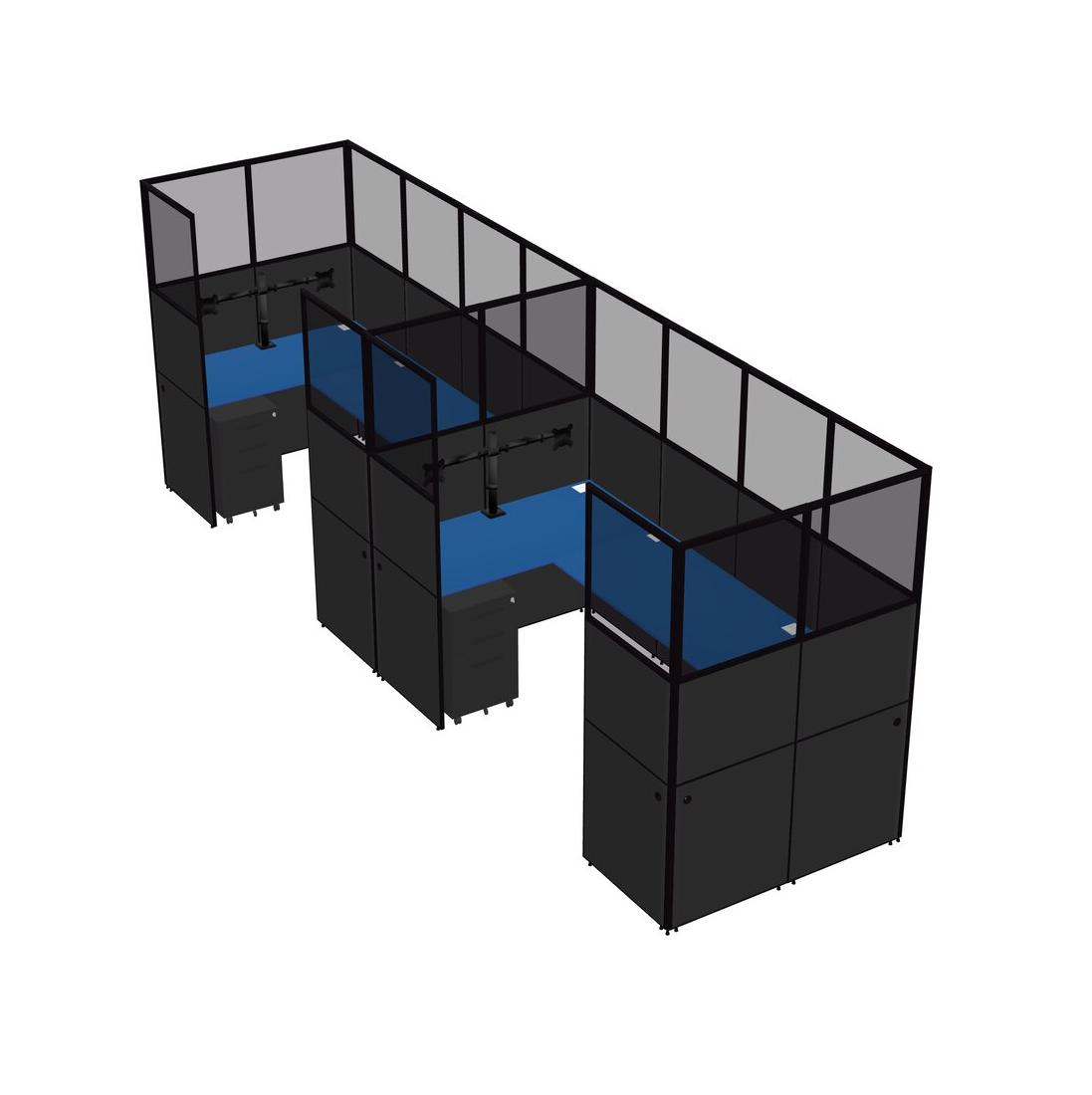 Système De Panneaux En U Prism Blue Pour 2 Personnes + Bras D'écran (bras Doubles) + Tiroirs Mobiles En Métal Pour 2 Utilisateurs