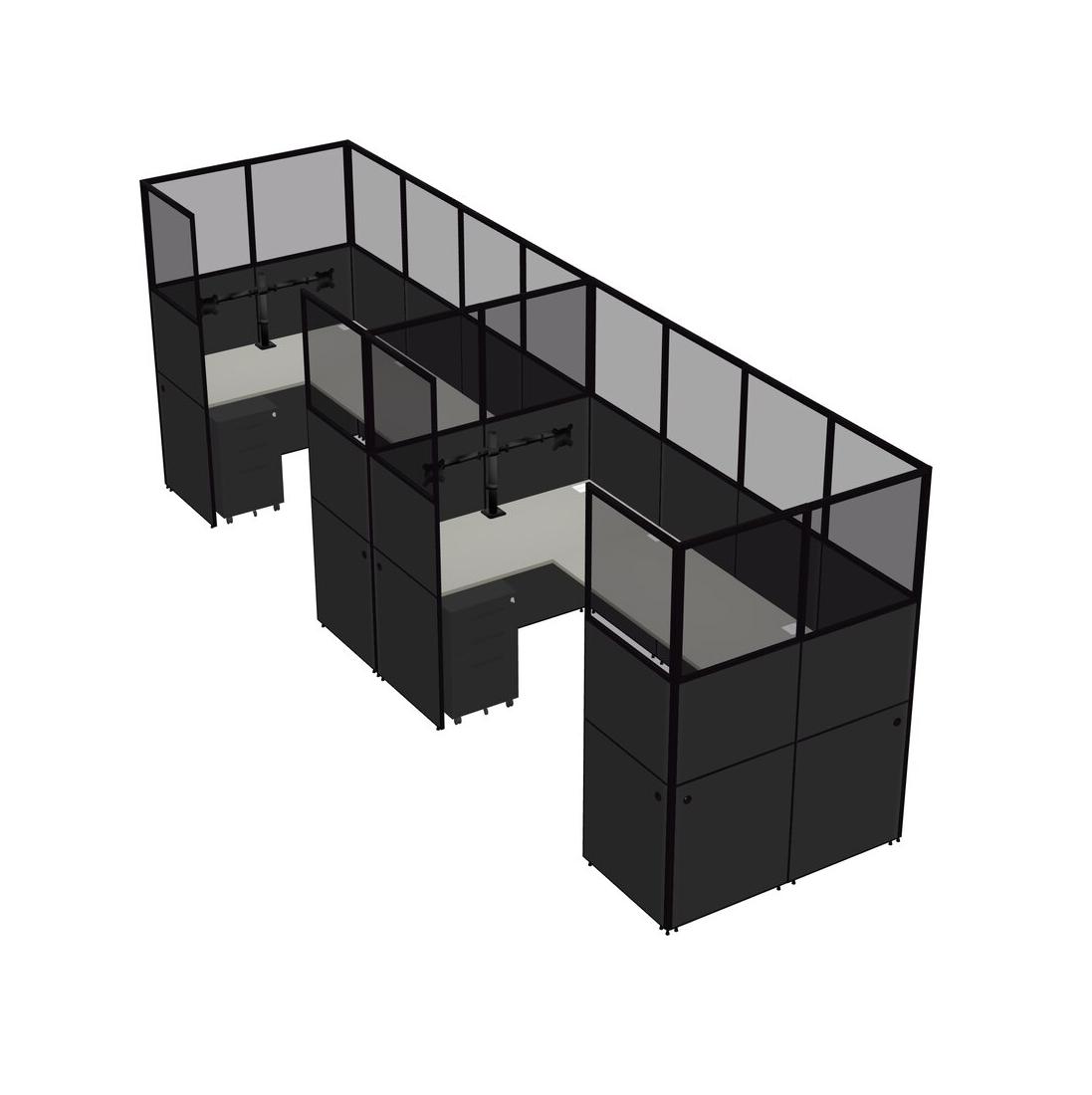 Système De Panneaux En U Grey Shadows Pour 2 Personnes + Bras D'écran (bras Doubles) + Tiroirs Mobiles En Métal Pour 2 Utilisateur(s)