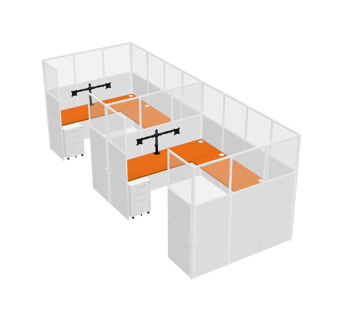 Système De Panneaux En U Orange Pour 2 Personnes + Bras De Moniteur (bras Doubles) + Tiroirs Mobiles En Métal Pour 2 Utilisateur(s)