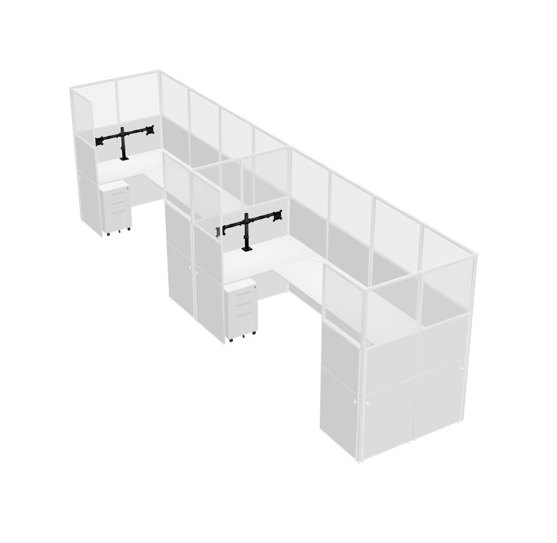 Système De Panneaux En U Blanc Pour 2 Personnes + Bras D'écran (bras Doubles) + Tiroirs Mobiles En Métal Pour 2 Utilisateurs