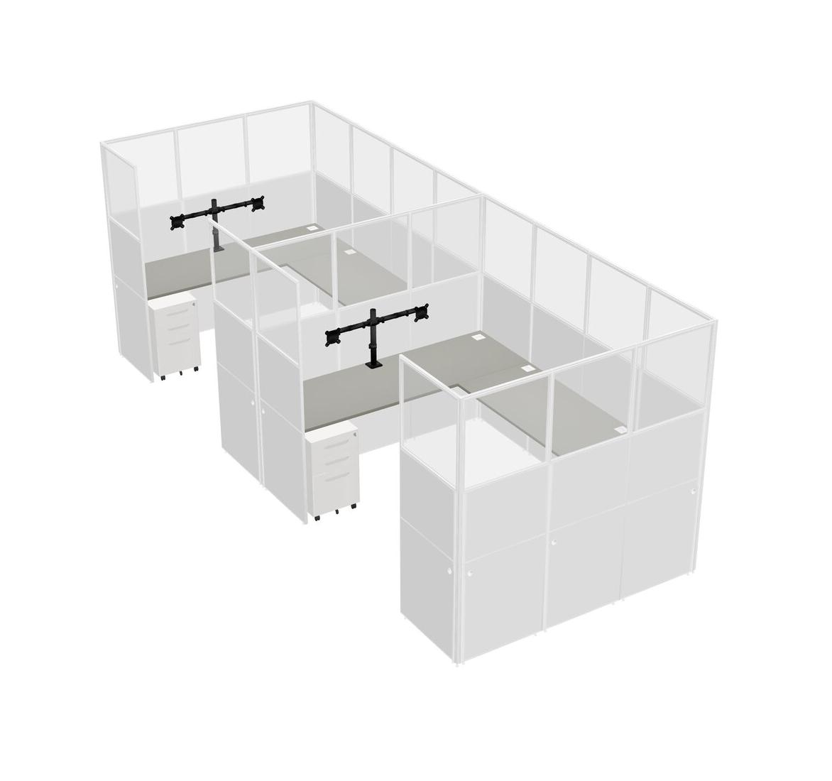 Système De Panneaux En U Grey Shadows Pour 2 Personnes + Bras D'écran (bras Doubles) + Tiroirs Mobiles En Métal Pour 2 Utilisateur(s)