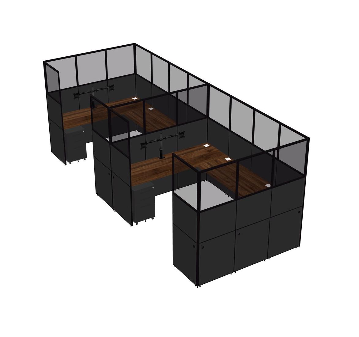 Système De Panneaux En U En Noyer Columbia Pour 2 Personnes + Bras D'écran (bras Doubles) + Tiroirs Mobiles En Métal Pour 2 Utilisateurs