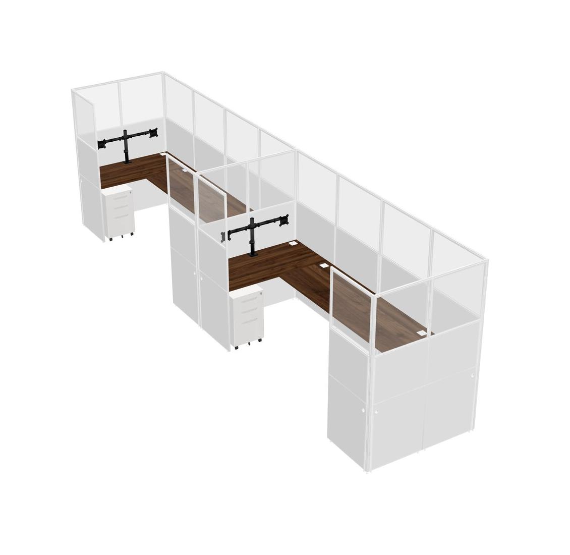 Système De Panneaux En U En Noyer Columbia Pour 2 Personnes + Bras D'écran (bras Doubles) + Tiroirs Mobiles En Métal Pour 2 Utilisateurs