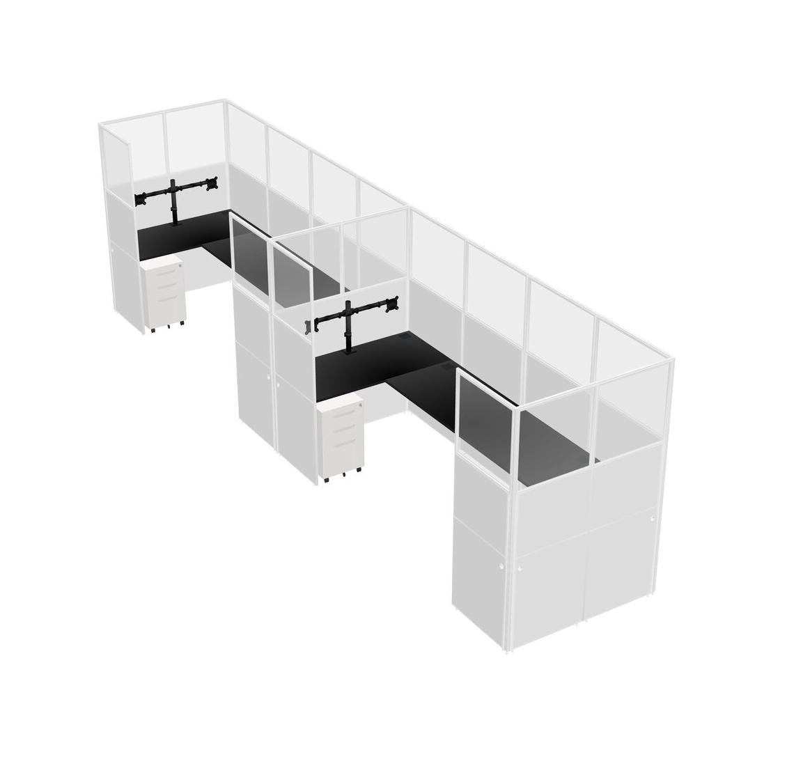 Système De Panneaux En U Noir Pour 2 Personnes + Bras D'écran (bras Doubles) + Tiroirs Mobiles En Métal Pour 2 Utilisateur(s)