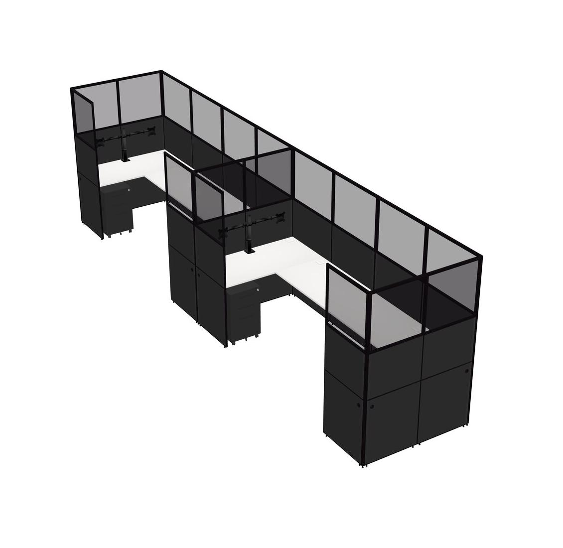 Système De Panneaux En U Blanc Pour 2 Personnes + Bras D'écran (bras Doubles) + Tiroirs Mobiles En Métal Pour 2 Utilisateurs