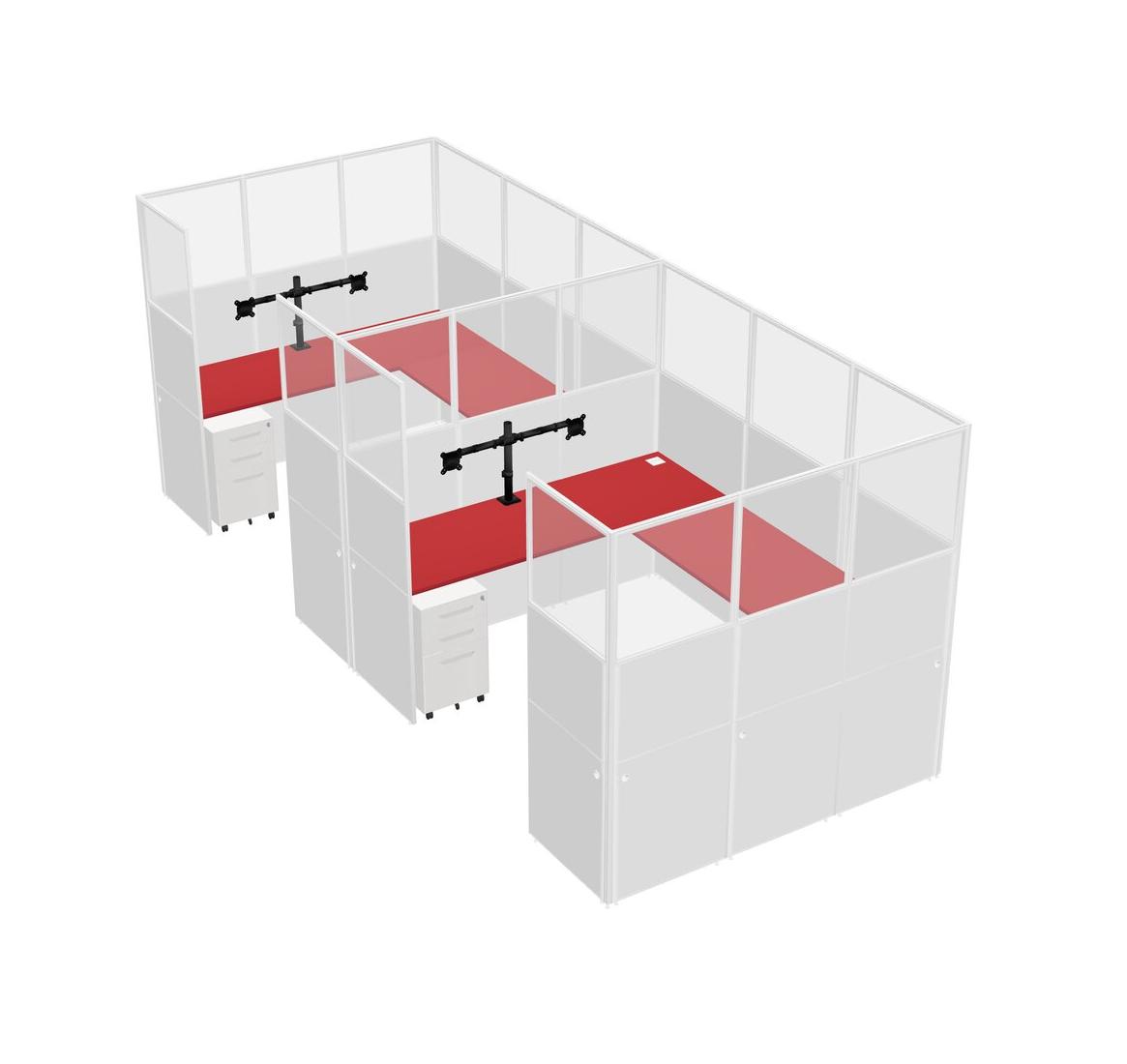 Système De Panneau En U Prism Red Pour 2 Personnes + Bras D'écran (bras Doubles) + Tiroirs Mobiles En Métal Pour 2 Utilisateur(s)