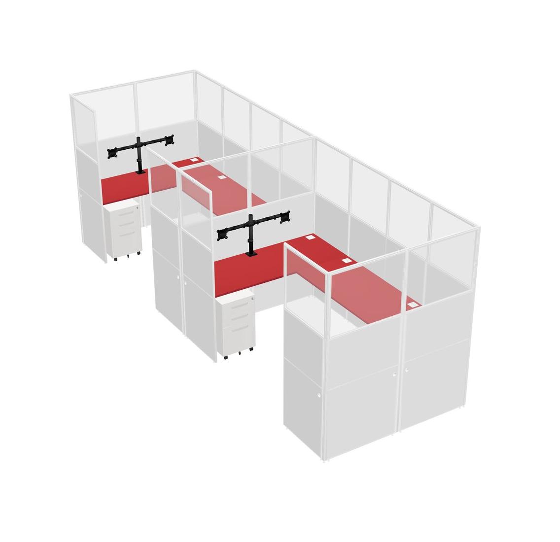 Système De Panneau En U Prism Red Pour 2 Personnes + Bras D'écran (bras Doubles) + Tiroirs Mobiles En Métal Pour 2 Utilisateur(s)