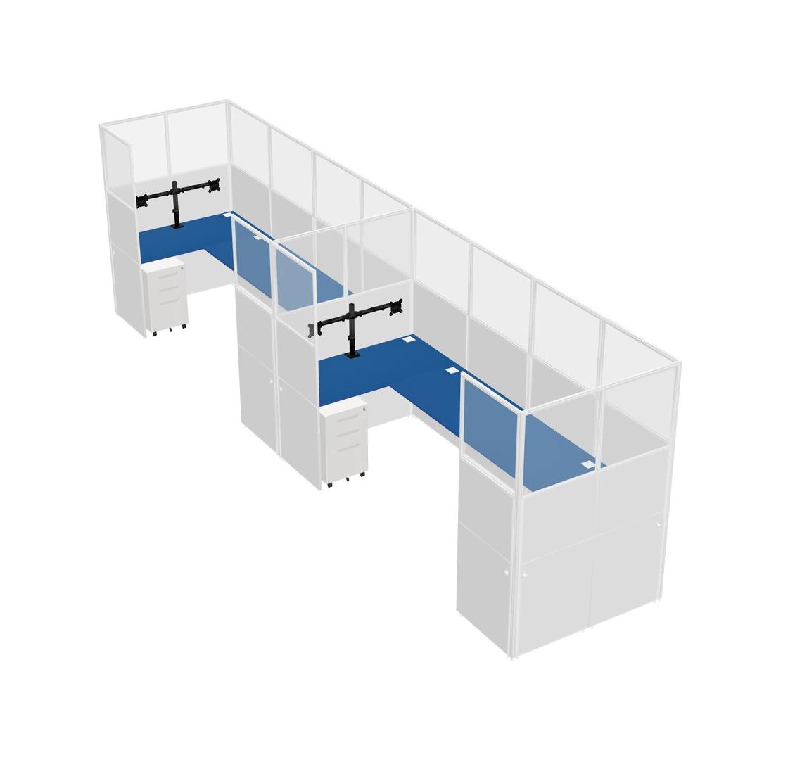 Système De Panneaux En U Prism Blue Pour 2 Personnes + Bras D'écran (bras Doubles) + Tiroirs Mobiles En Métal Pour 2 Utilisateurs