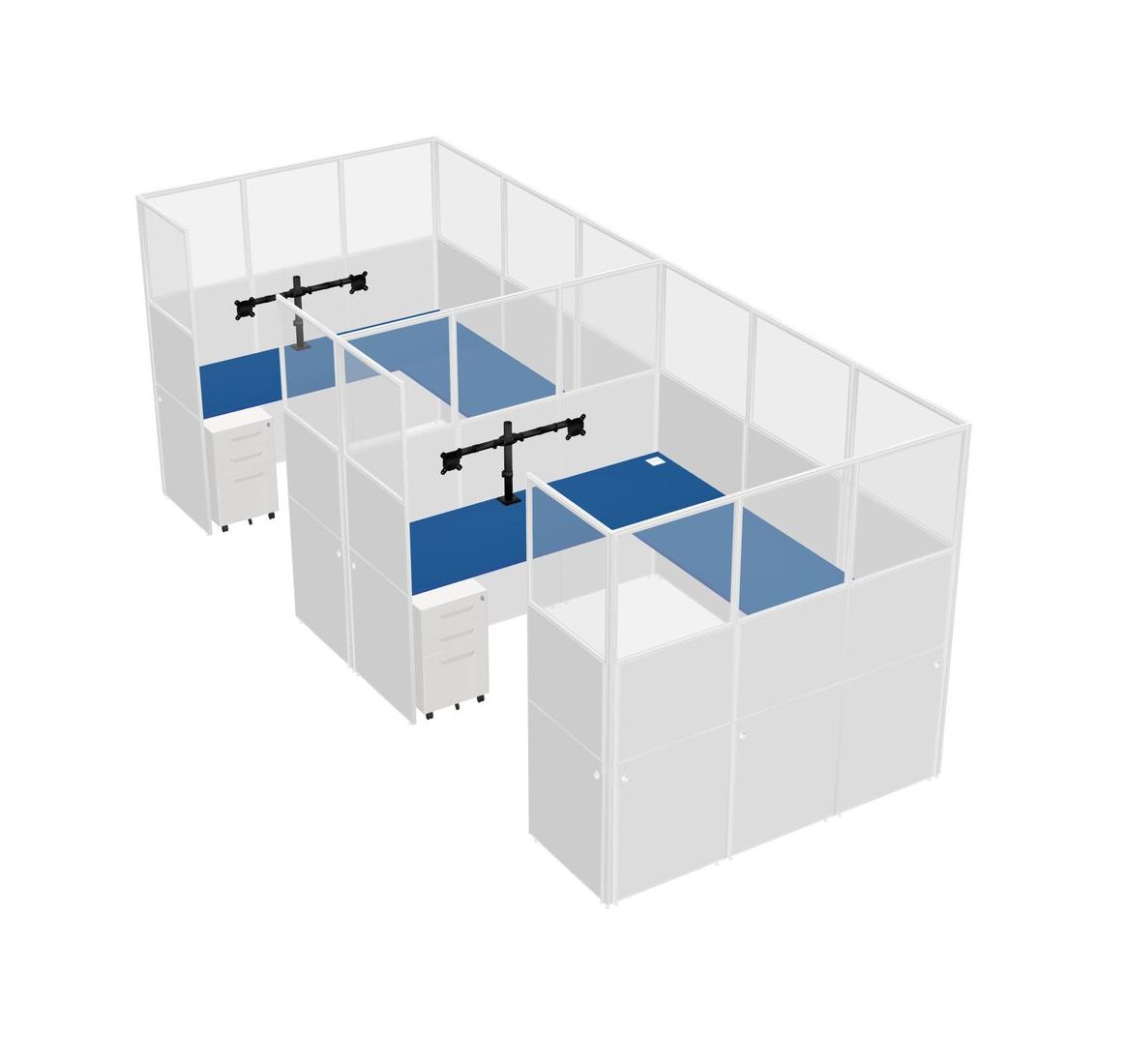 Système De Panneaux En U Prism Blue Pour 2 Personnes + Bras D'écran (bras Doubles) + Tiroirs Mobiles En Métal Pour 2 Utilisateurs