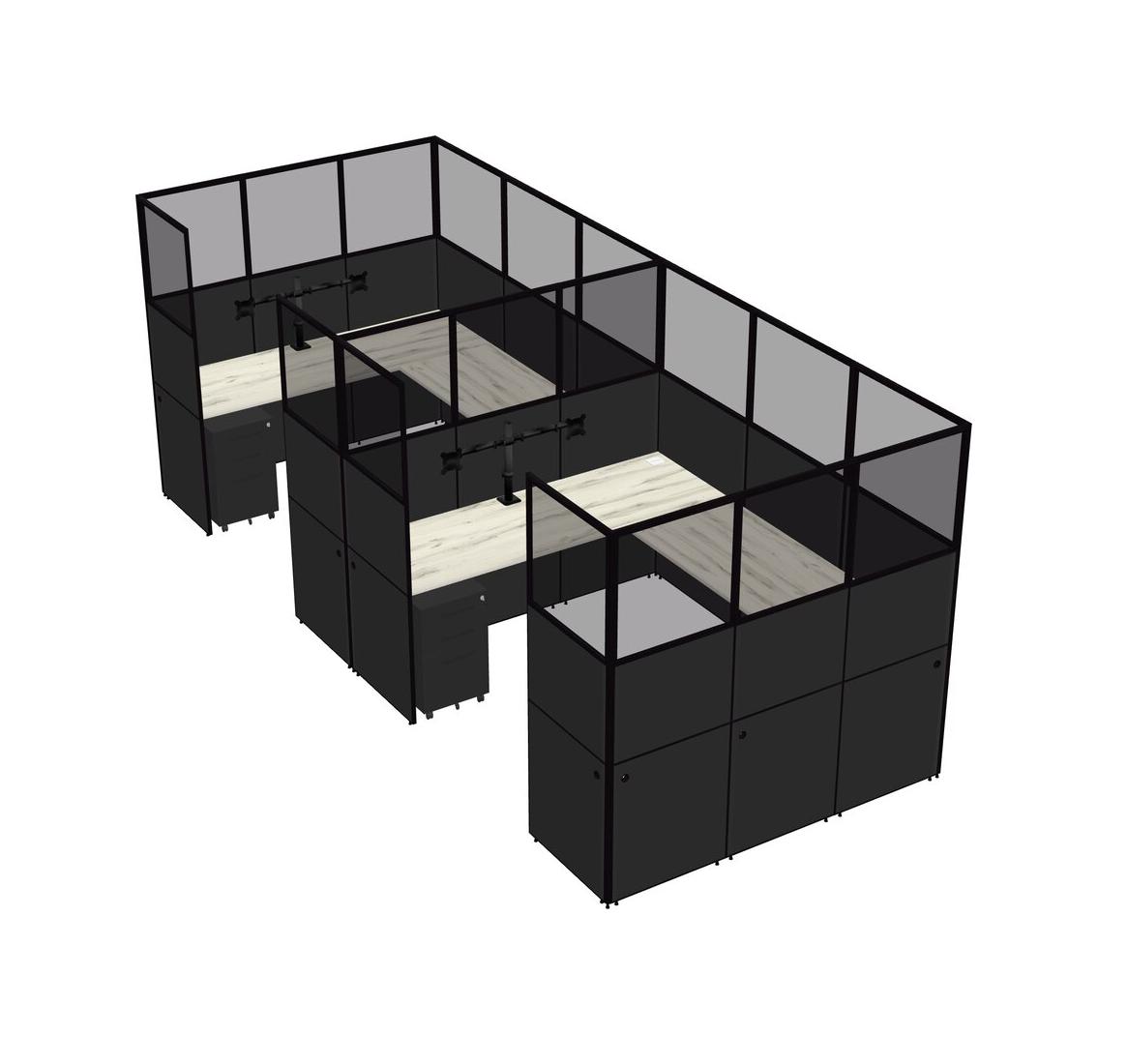 Système De Panneaux En U Heinne Holz Pour 2 Personnes + Bras D'écran (bras Doubles) + Tiroirs Mobiles En Métal Pour 2 Utilisateur(s)