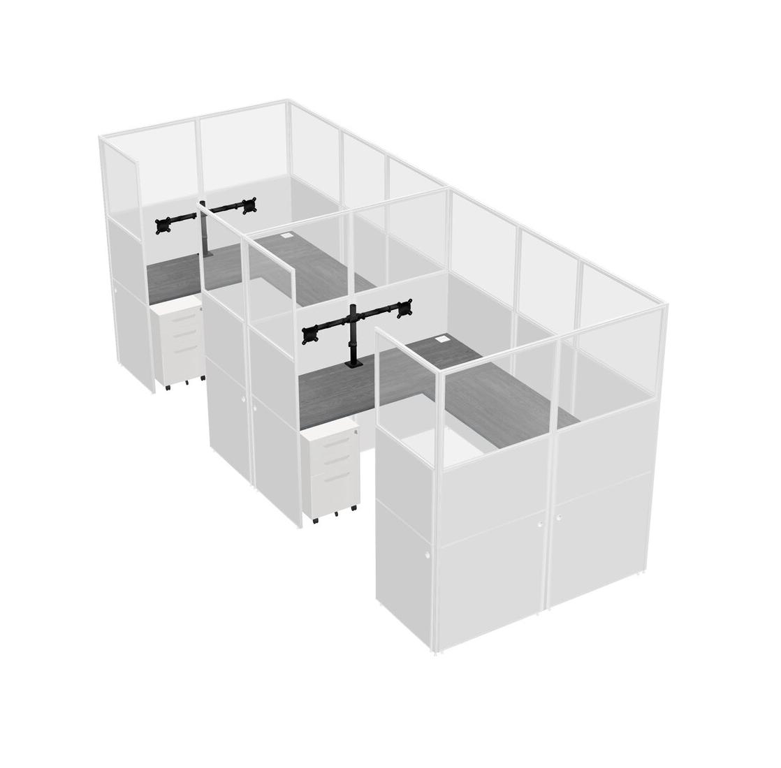 Système De Panneaux En U Gris Pour 2 Personnes + Bras D'écran (bras Doubles) + Tiroirs Mobiles En Métal Pour 2 Utilisateurs