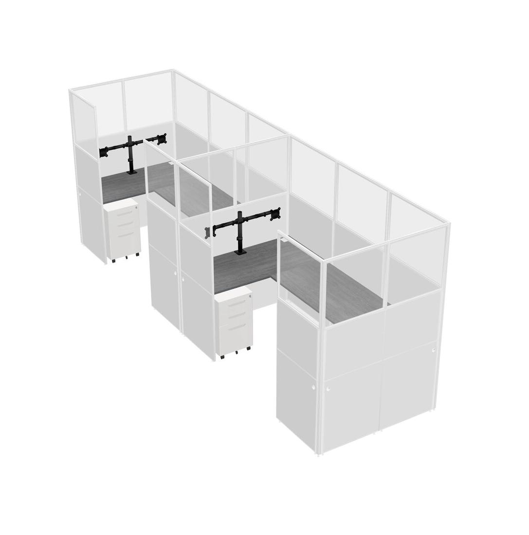 Système De Panneaux En U Gris Pour 2 Personnes + Bras D'écran (bras Doubles) + Tiroirs Mobiles En Métal Pour 2 Utilisateurs