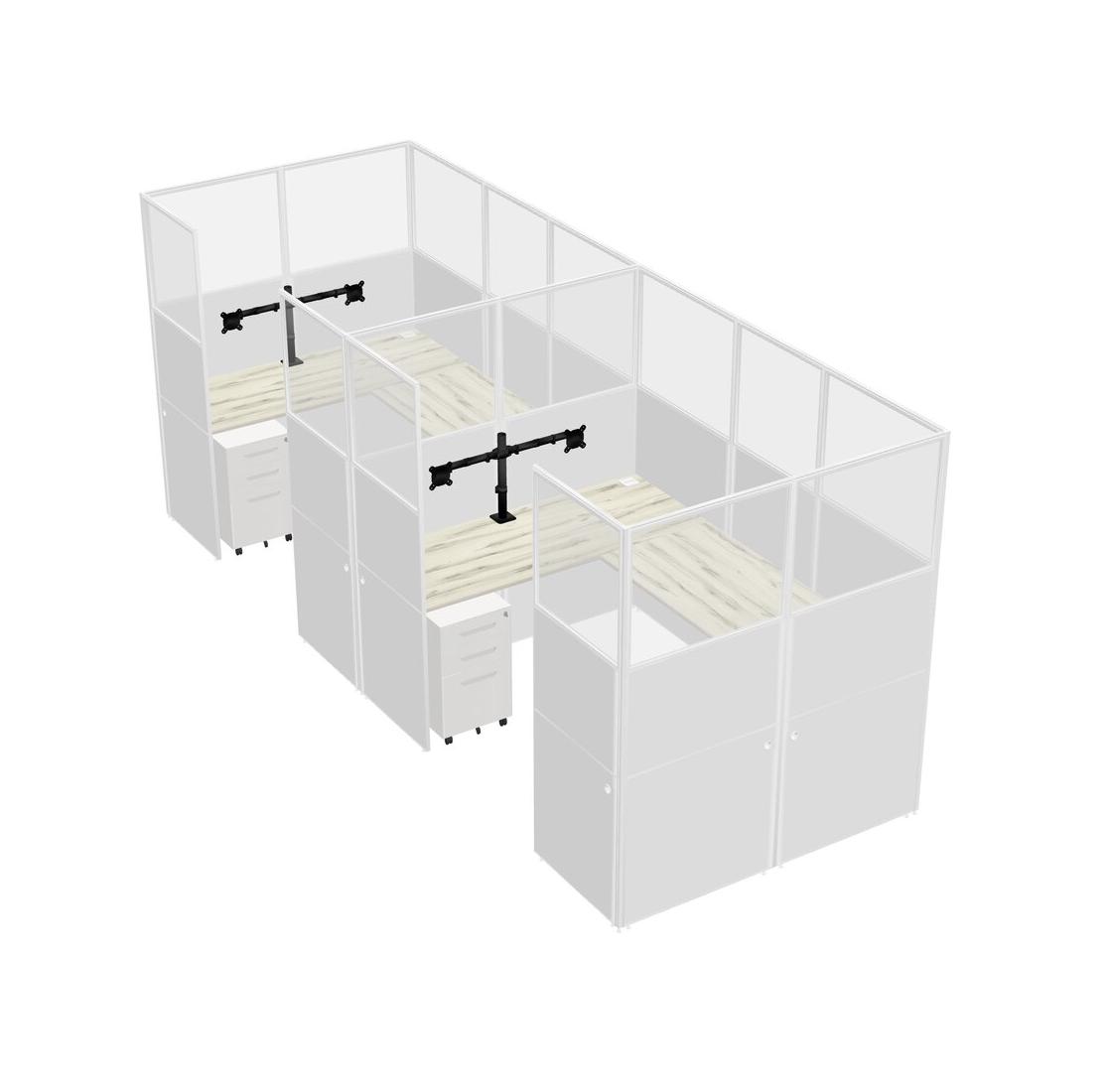 Système De Panneaux En U Heinne Holz Pour 2 Personnes + Bras D'écran (bras Doubles) + Tiroirs Mobiles En Métal Pour 2 Utilisateur(s)