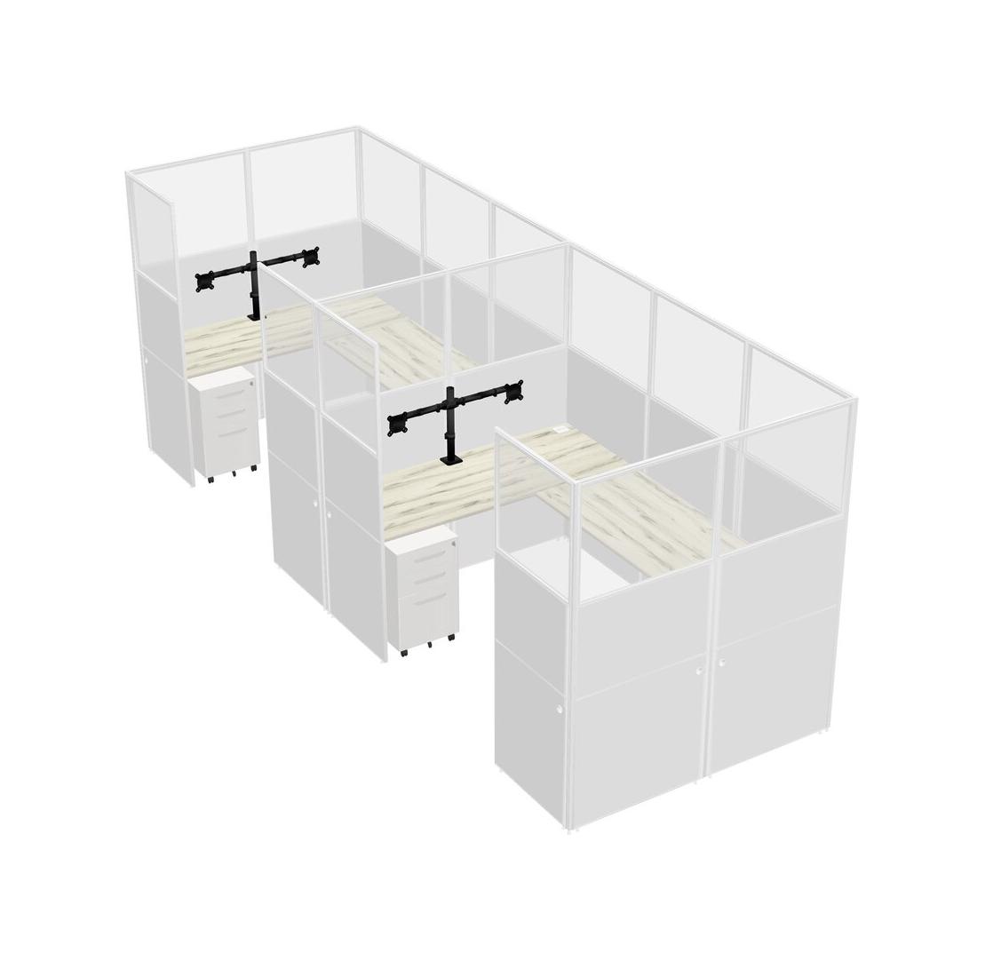 Système De Panneaux En U Heinne Holz Pour 2 Personnes + Bras D'écran (bras Doubles) + Tiroirs Mobiles En Métal Pour 2 Utilisateur(s)