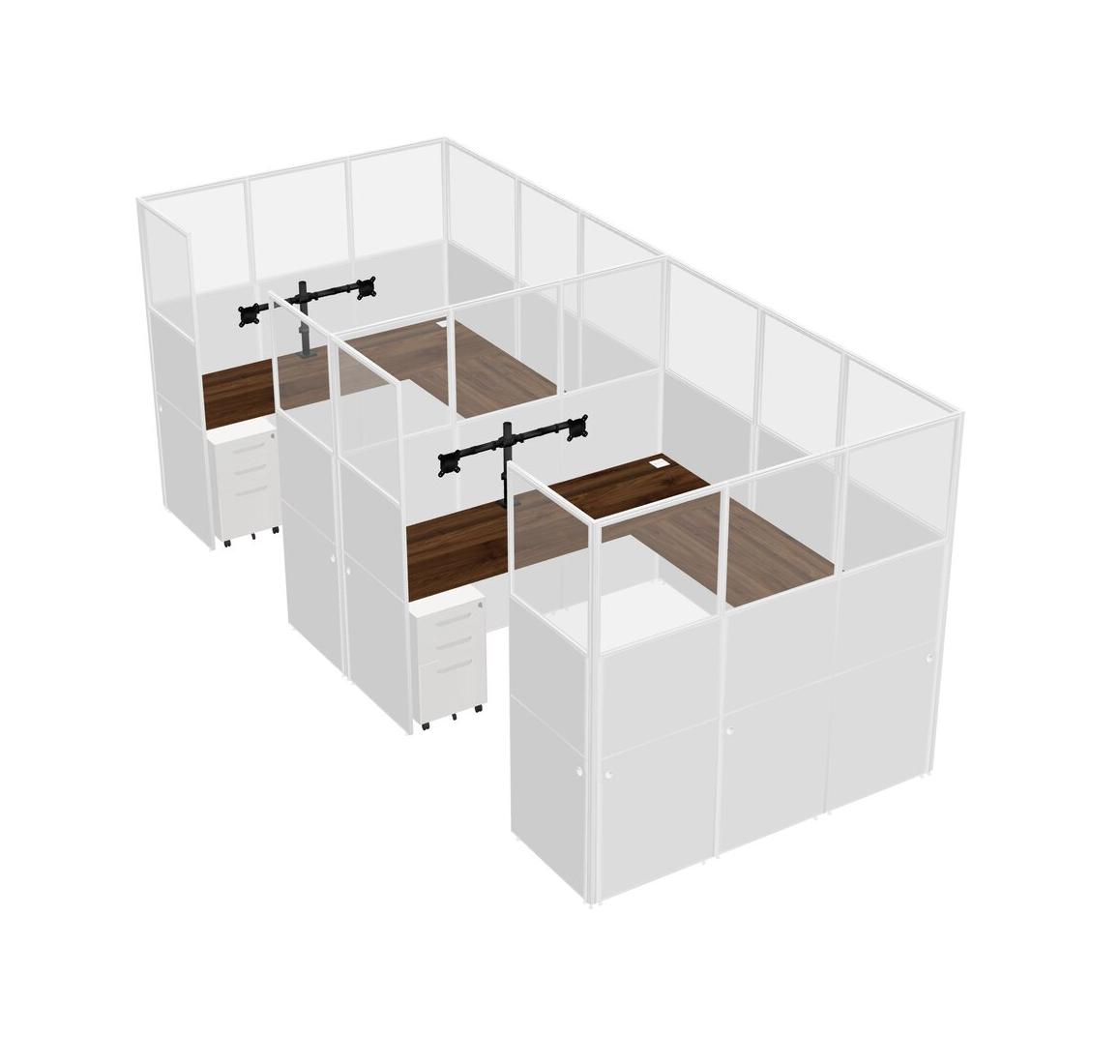 Système De Panneaux En U En Noyer Columbia Pour 2 Personnes + Bras D'écran (bras Doubles) + Tiroirs Mobiles En Métal Pour 2 Utilisateurs