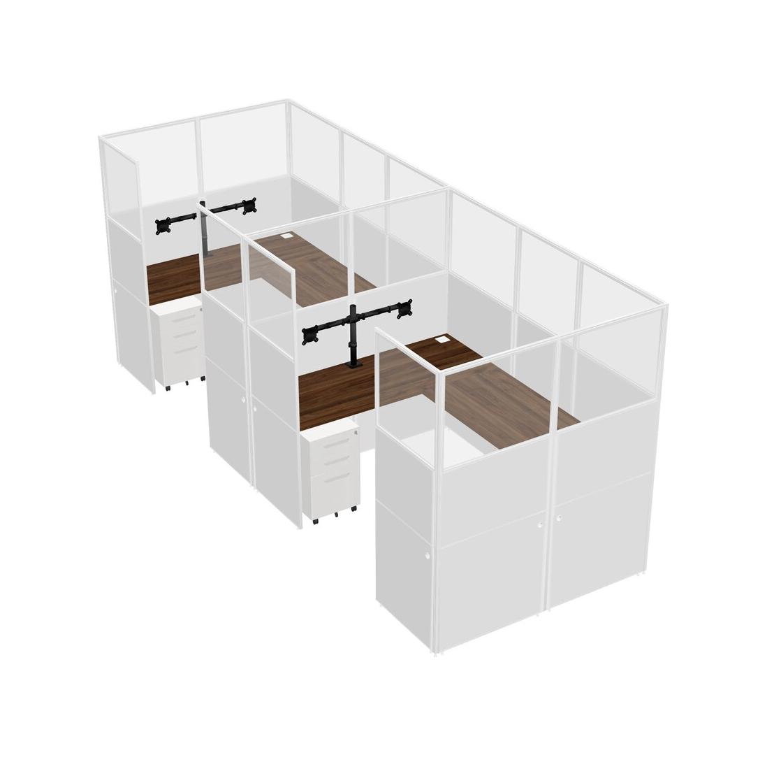 Système De Panneaux En U En Noyer Columbia Pour 2 Personnes + Bras D'écran (bras Doubles) + Tiroirs Mobiles En Métal Pour 2 Utilisateurs