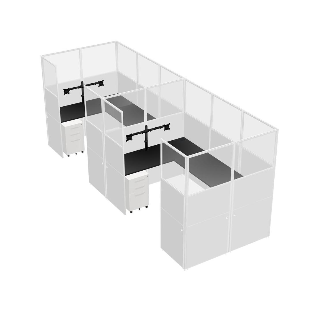 Système De Panneaux En U Noir Pour 2 Personnes + Bras D'écran (bras Doubles) + Tiroirs Mobiles En Métal Pour 2 Utilisateur(s)