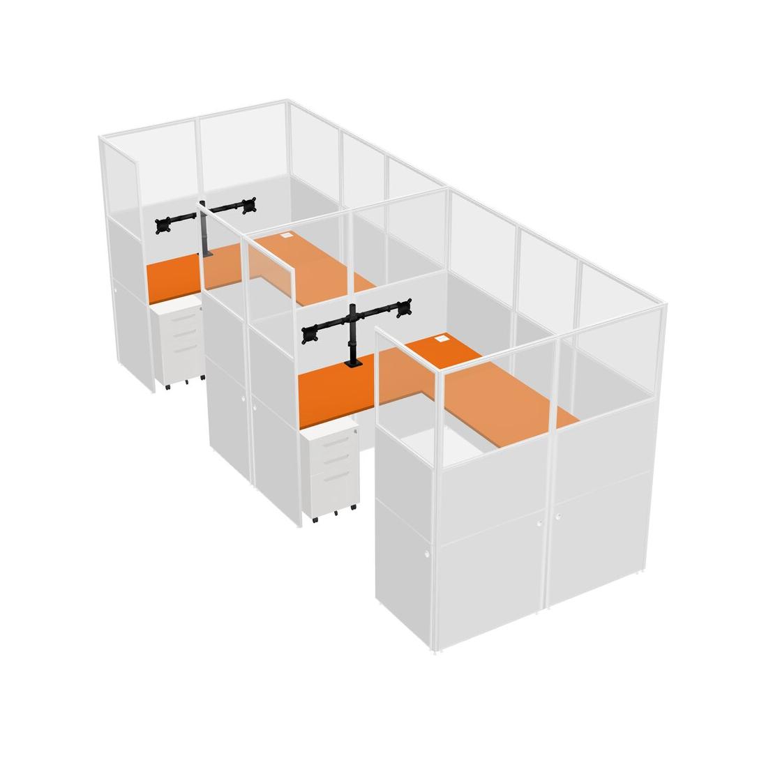 Système De Panneaux En U Orange Pour 2 Personnes + Bras De Moniteur (bras Doubles) + Tiroirs Mobiles En Métal Pour 2 Utilisateur(s)