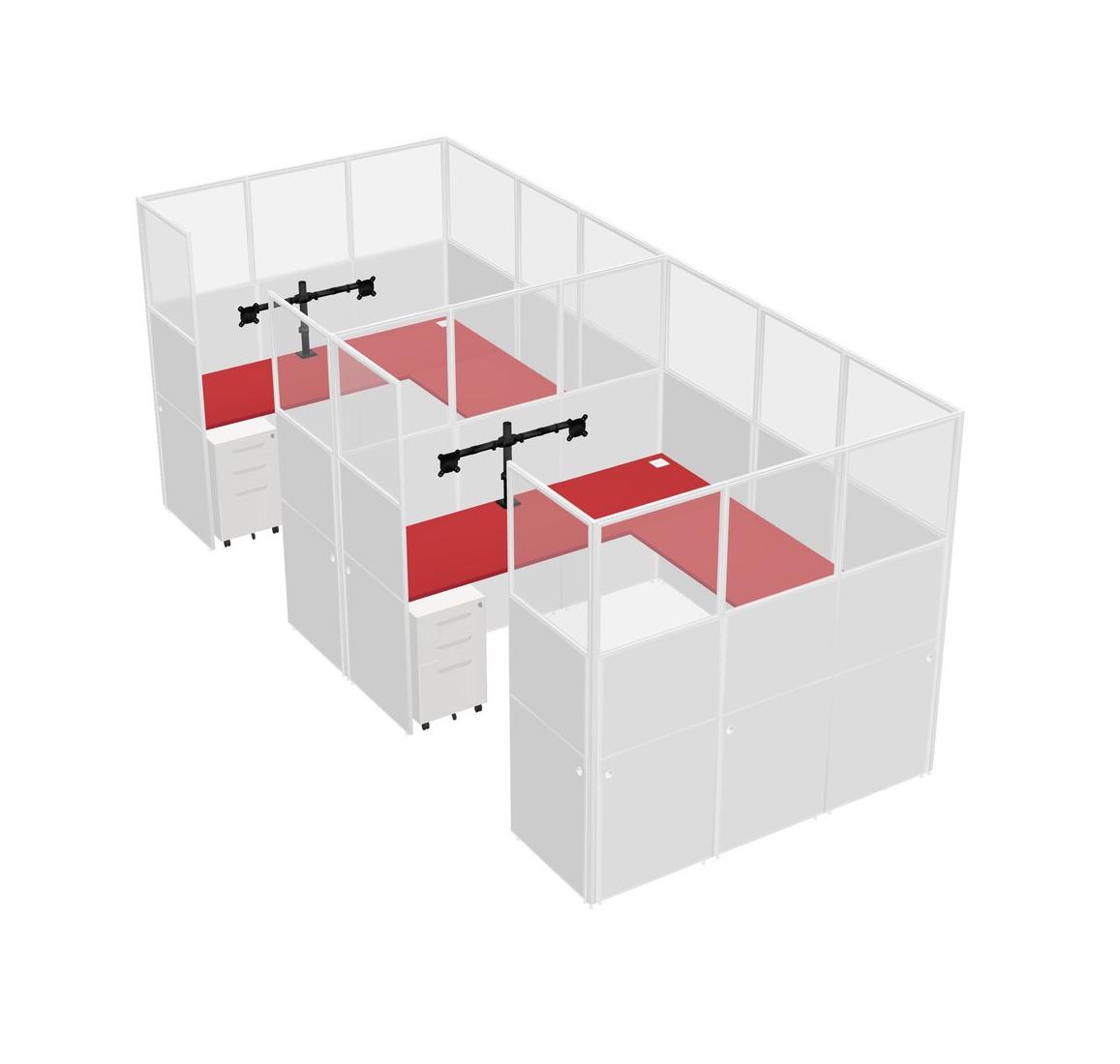 Système De Panneau En U Prism Red Pour 2 Personnes + Bras D'écran (bras Doubles) + Tiroirs Mobiles En Métal Pour 2 Utilisateur(s)