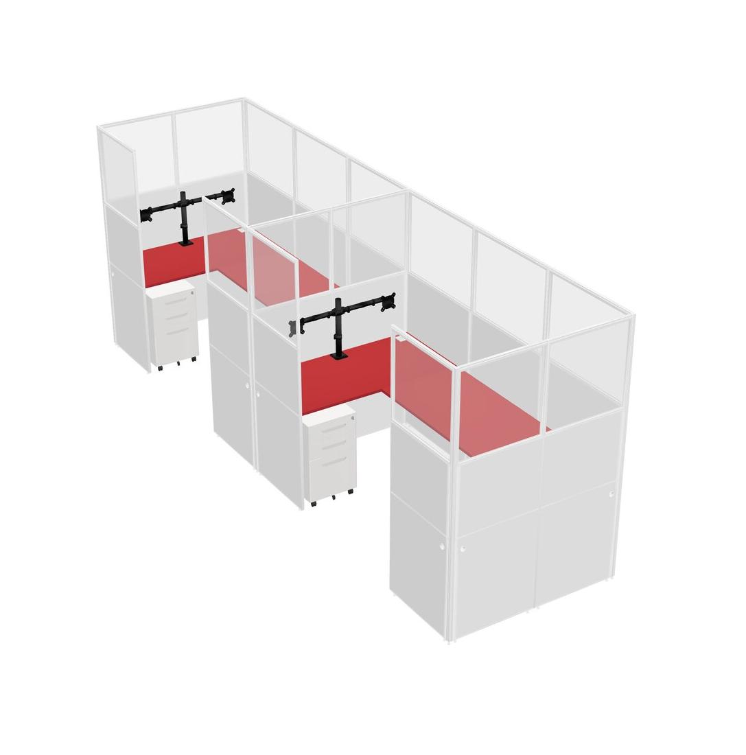 Système De Panneau En U Prism Red Pour 2 Personnes + Bras D'écran (bras Doubles) + Tiroirs Mobiles En Métal Pour 2 Utilisateur(s)