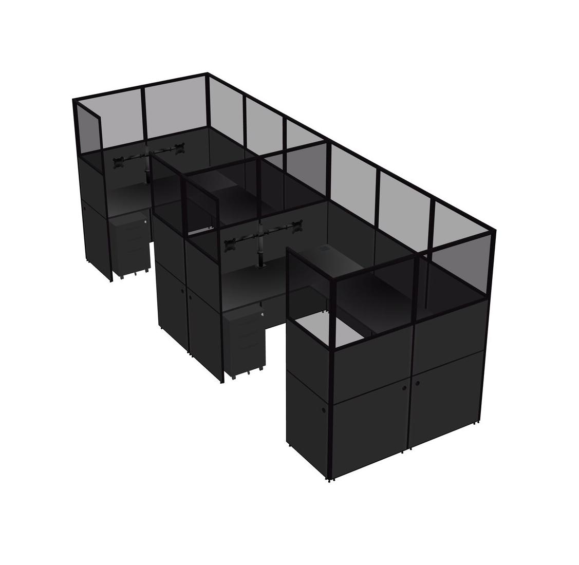 Système De Panneaux En U Noir Pour 2 Personnes + Bras D'écran (bras Doubles) + Tiroirs Mobiles En Métal Pour 2 Utilisateur(s)