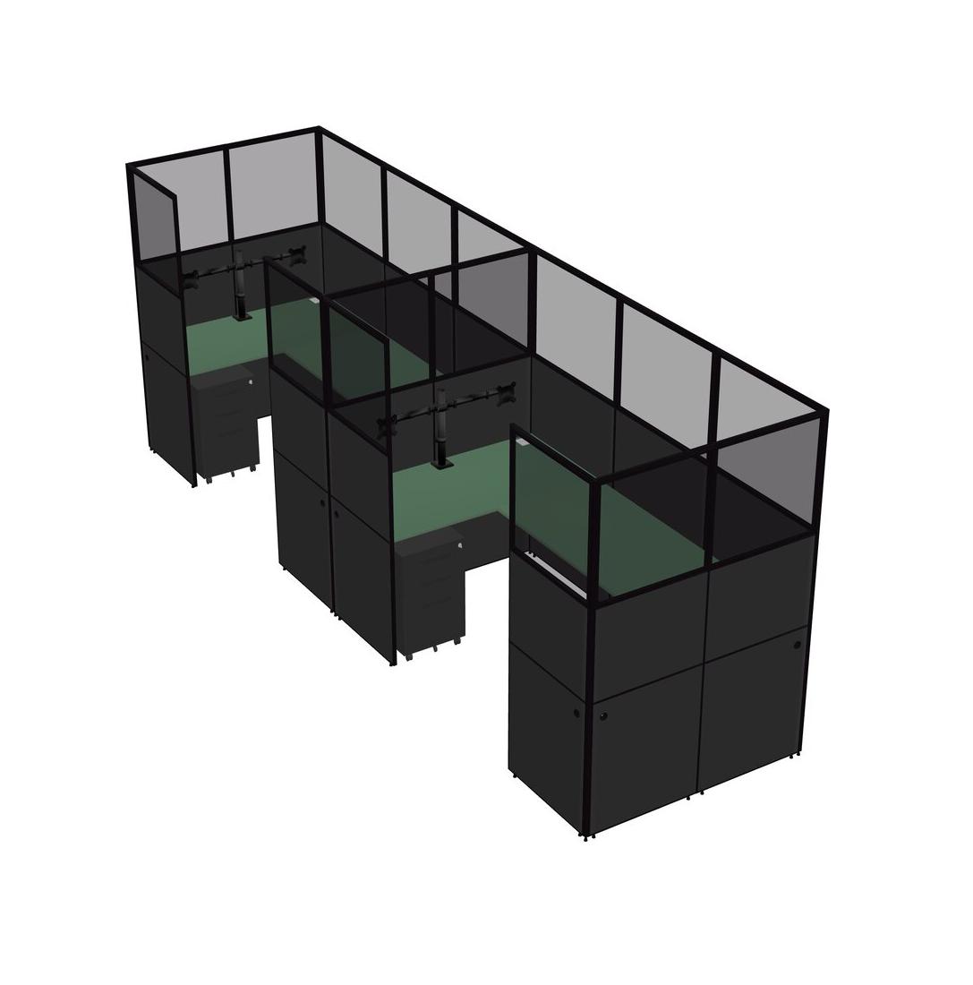 Système De Panneaux En U Vert Pour 2 Personnes + Bras De Moniteur (bras Doubles) + Tiroirs Mobiles En Métal Pour 2 Utilisateur(s)