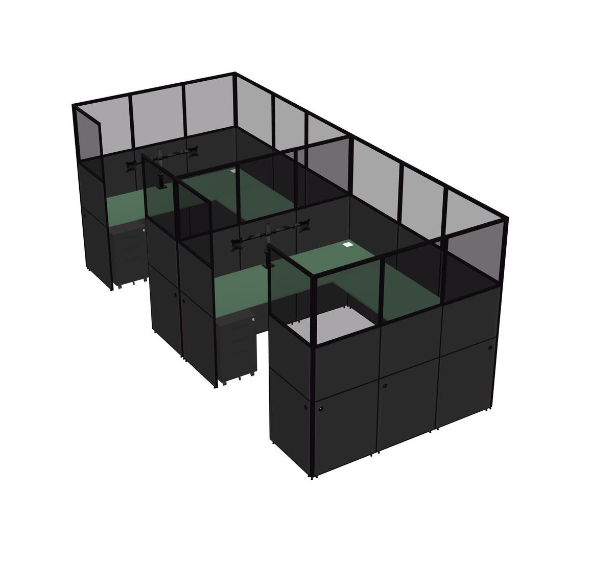 Système De Panneaux En U Vert Pour 2 Personnes + Bras De Moniteur (bras Doubles) + Tiroirs Mobiles En Métal Pour 2 Utilisateur(s)