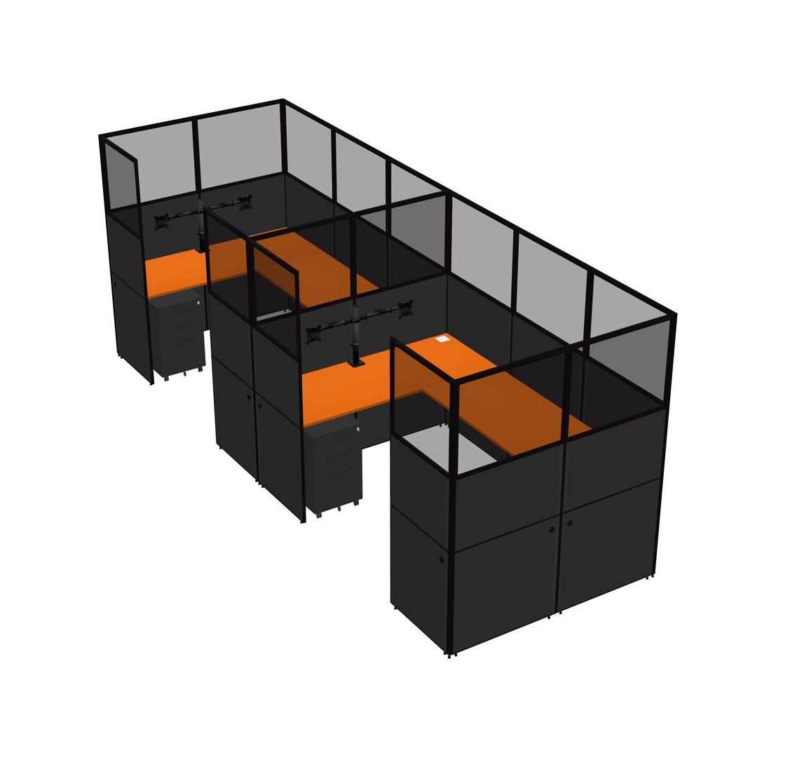Système De Panneaux En U Orange Pour 2 Personnes + Bras De Moniteur (bras Doubles) + Tiroirs Mobiles En Métal Pour 2 Utilisateur(s)
