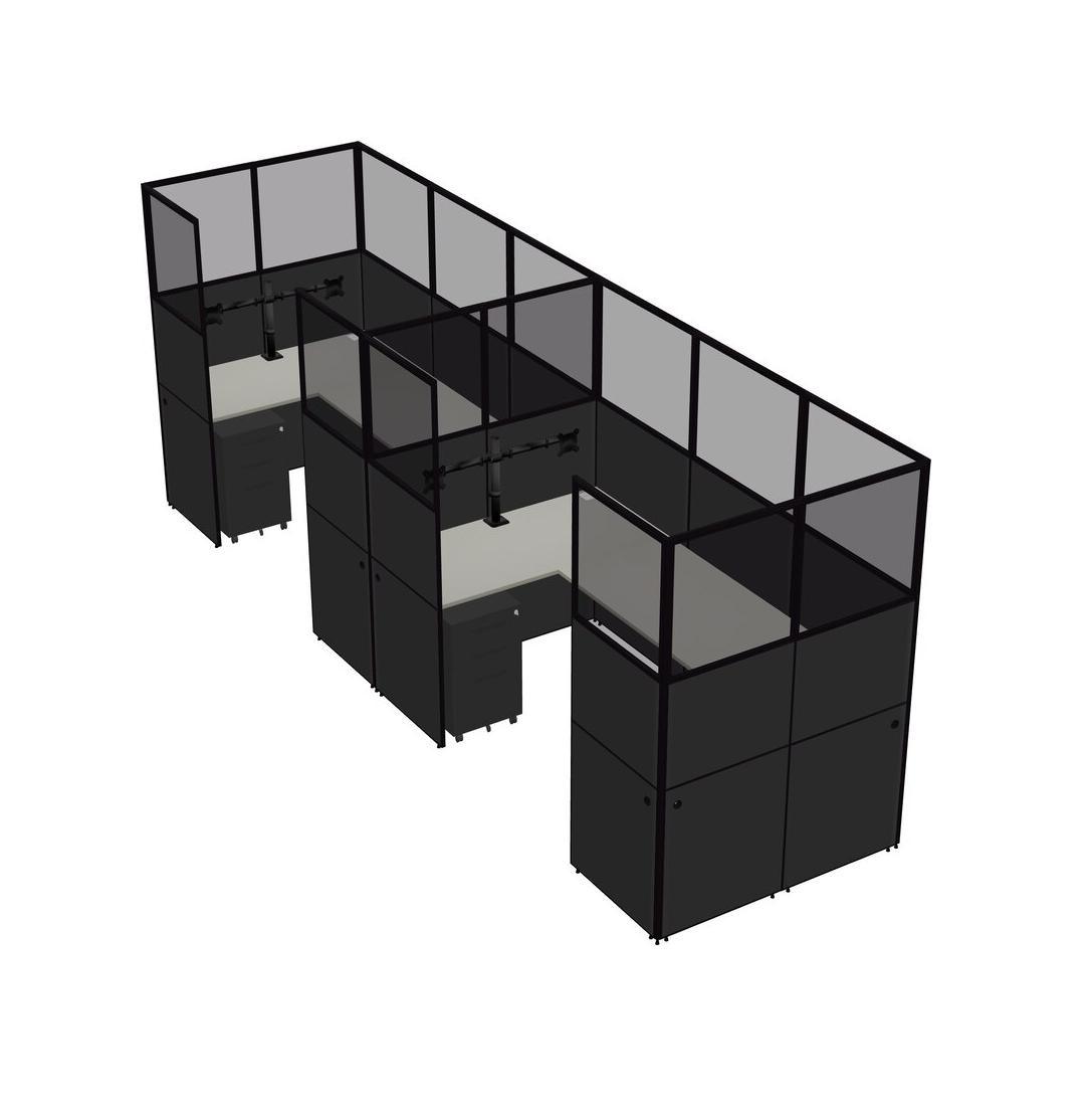Système De Panneaux En U Grey Shadows Pour 2 Personnes + Bras D'écran (bras Doubles) + Tiroirs Mobiles En Métal Pour 2 Utilisateur(s)