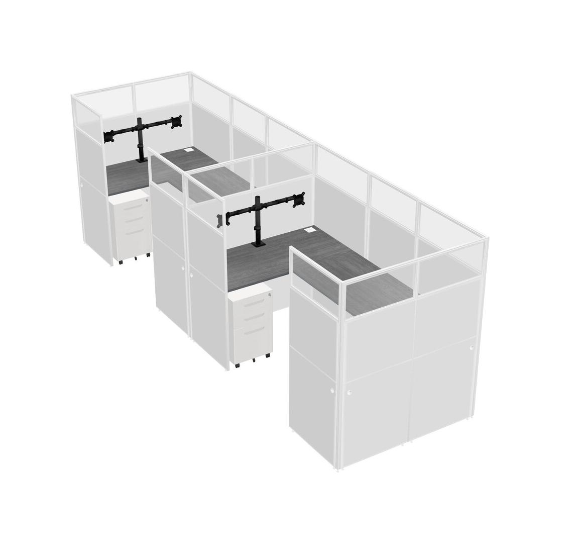 Système De Panneaux En U Gris Pour 2 Personnes + Bras D'écran (bras Doubles) + Tiroirs Mobiles En Métal Pour 2 Utilisateurs