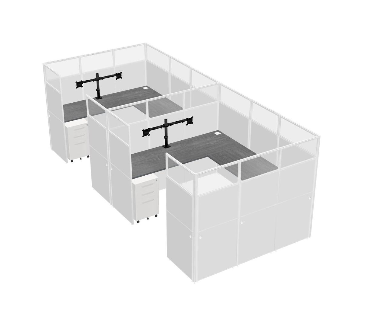 Système De Panneaux En U Gris Pour 2 Personnes + Bras D'écran (bras Doubles) + Tiroirs Mobiles En Métal Pour 2 Utilisateurs