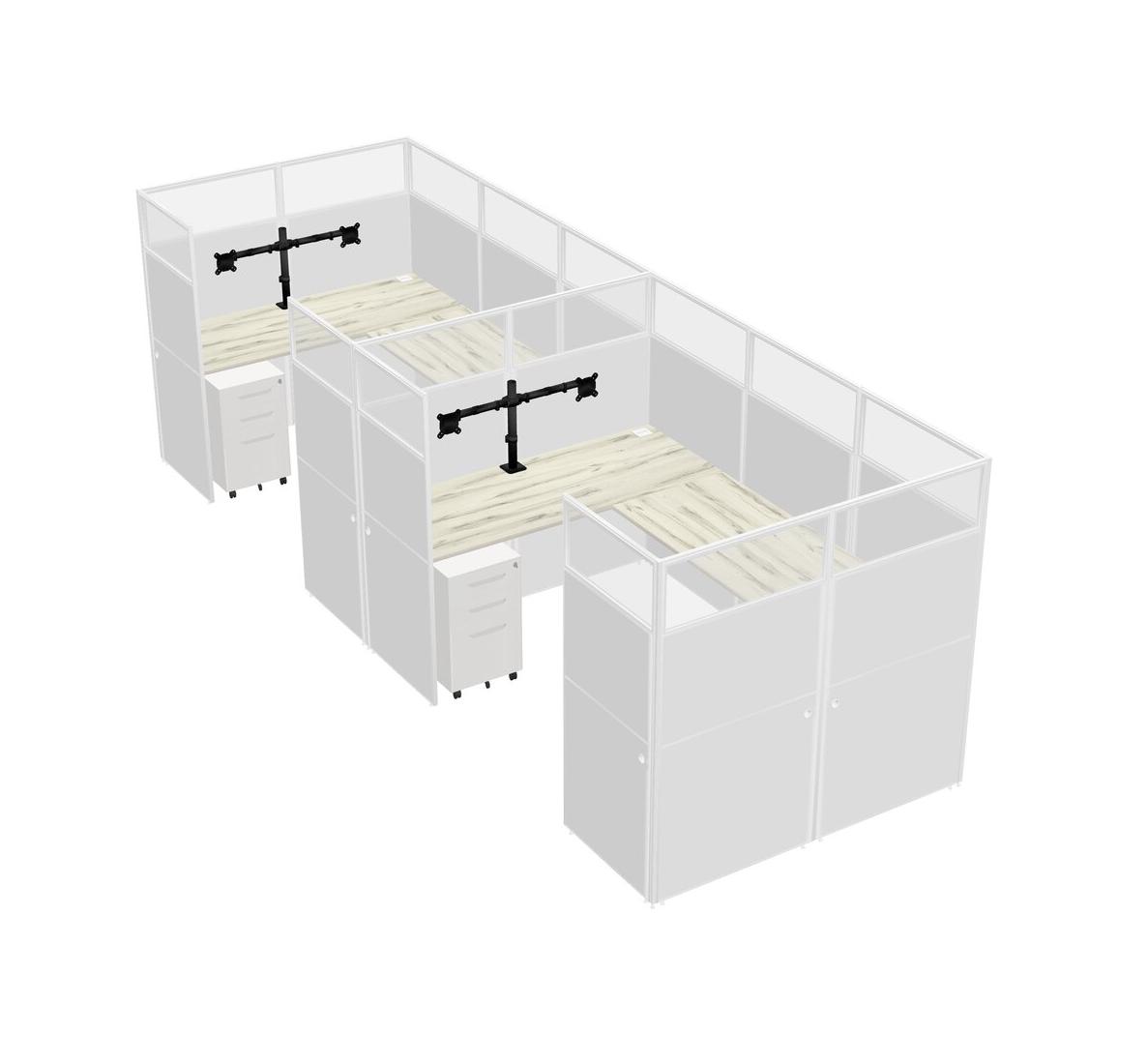 Système De Panneaux En U Heinne Holz Pour 2 Personnes + Bras D'écran (bras Doubles) + Tiroirs Mobiles En Métal Pour 2 Utilisateur(s)