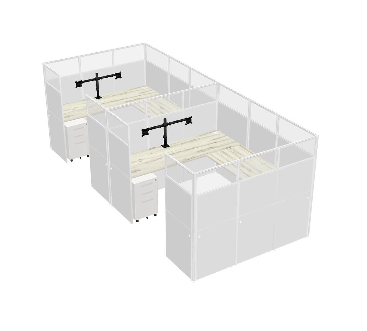 Système De Panneaux En U Heinne Holz Pour 2 Personnes + Bras D'écran (bras Doubles) + Tiroirs Mobiles En Métal Pour 2 Utilisateur(s)