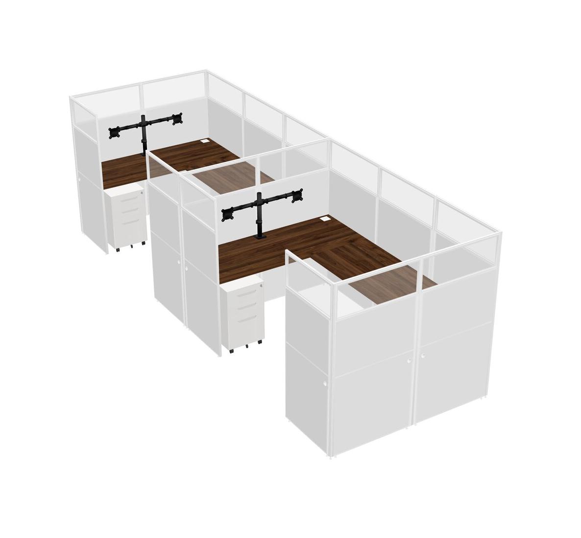 Système De Panneaux En U En Noyer Columbia Pour 2 Personnes + Bras D'écran (bras Doubles) + Tiroirs Mobiles En Métal Pour 2 Utilisateurs