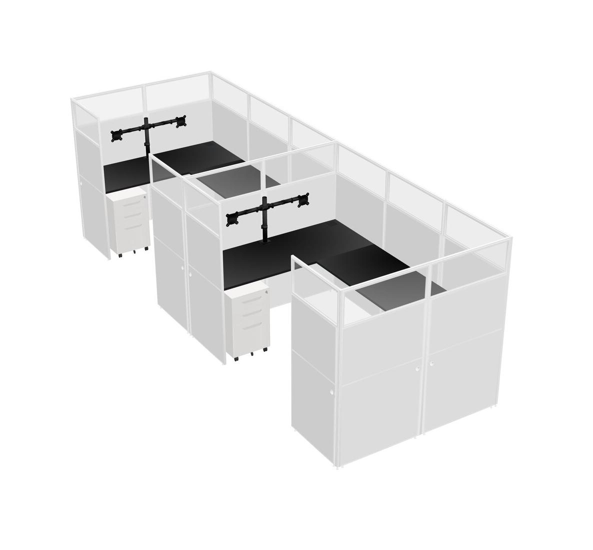 Système De Panneaux En U Noir Pour 2 Personnes + Bras D'écran (bras Doubles) + Tiroirs Mobiles En Métal Pour 2 Utilisateur(s)