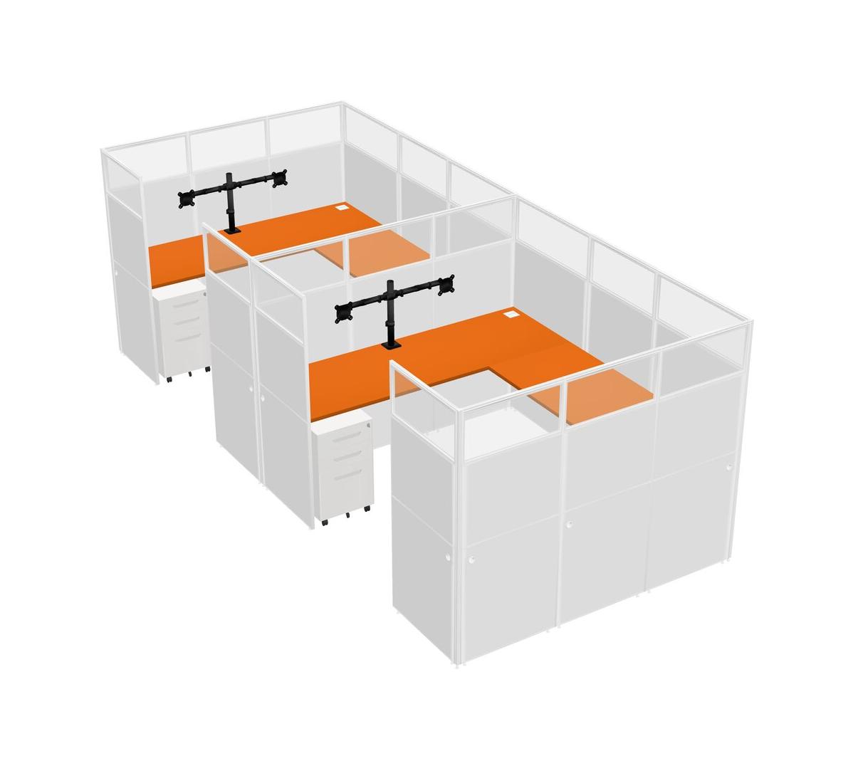 Système De Panneaux En U Orange Pour 2 Personnes + Bras De Moniteur (bras Doubles) + Tiroirs Mobiles En Métal Pour 2 Utilisateur(s)