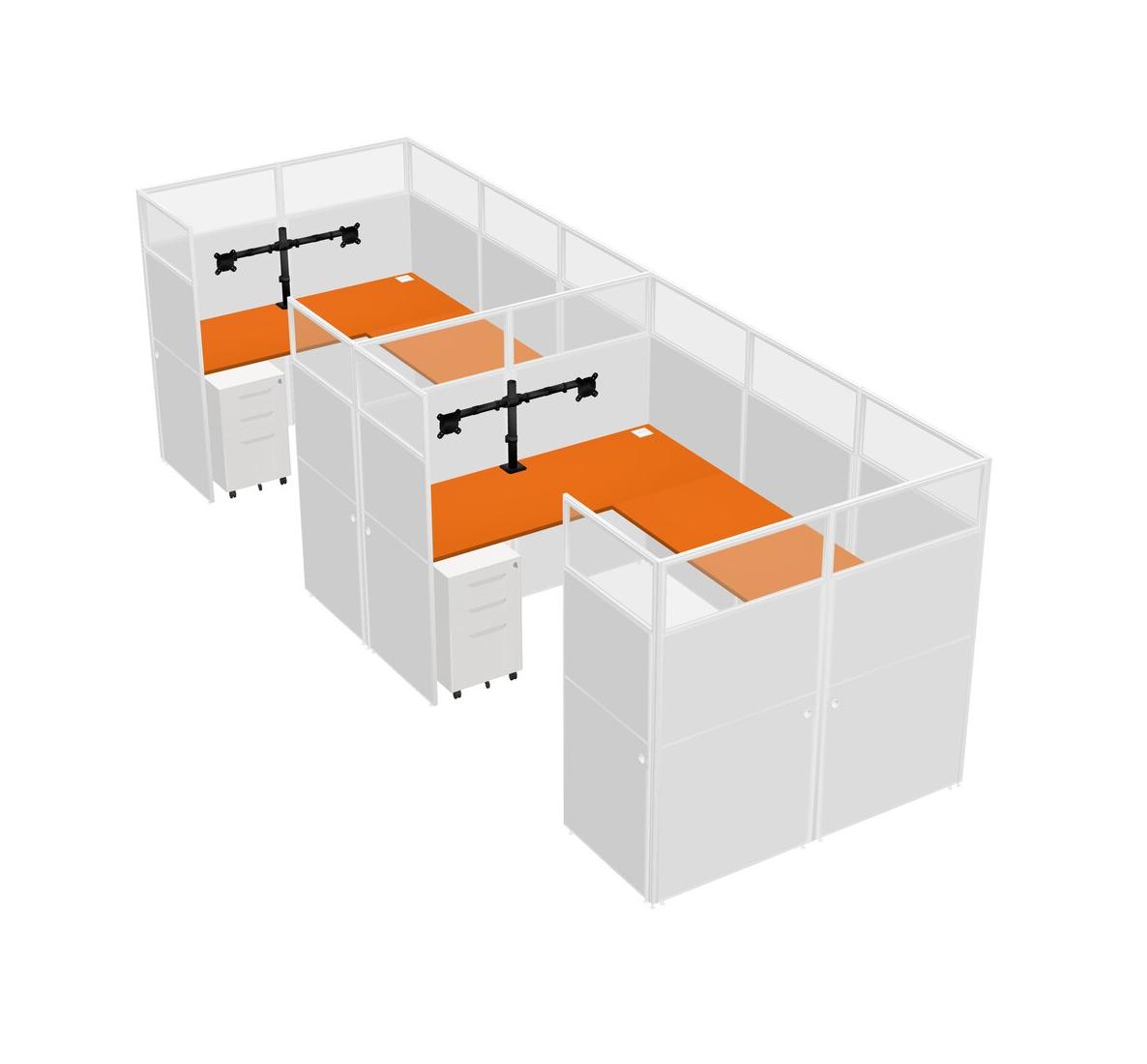 Système De Panneaux En U Orange Pour 2 Personnes + Bras De Moniteur (bras Doubles) + Tiroirs Mobiles En Métal Pour 2 Utilisateur(s)