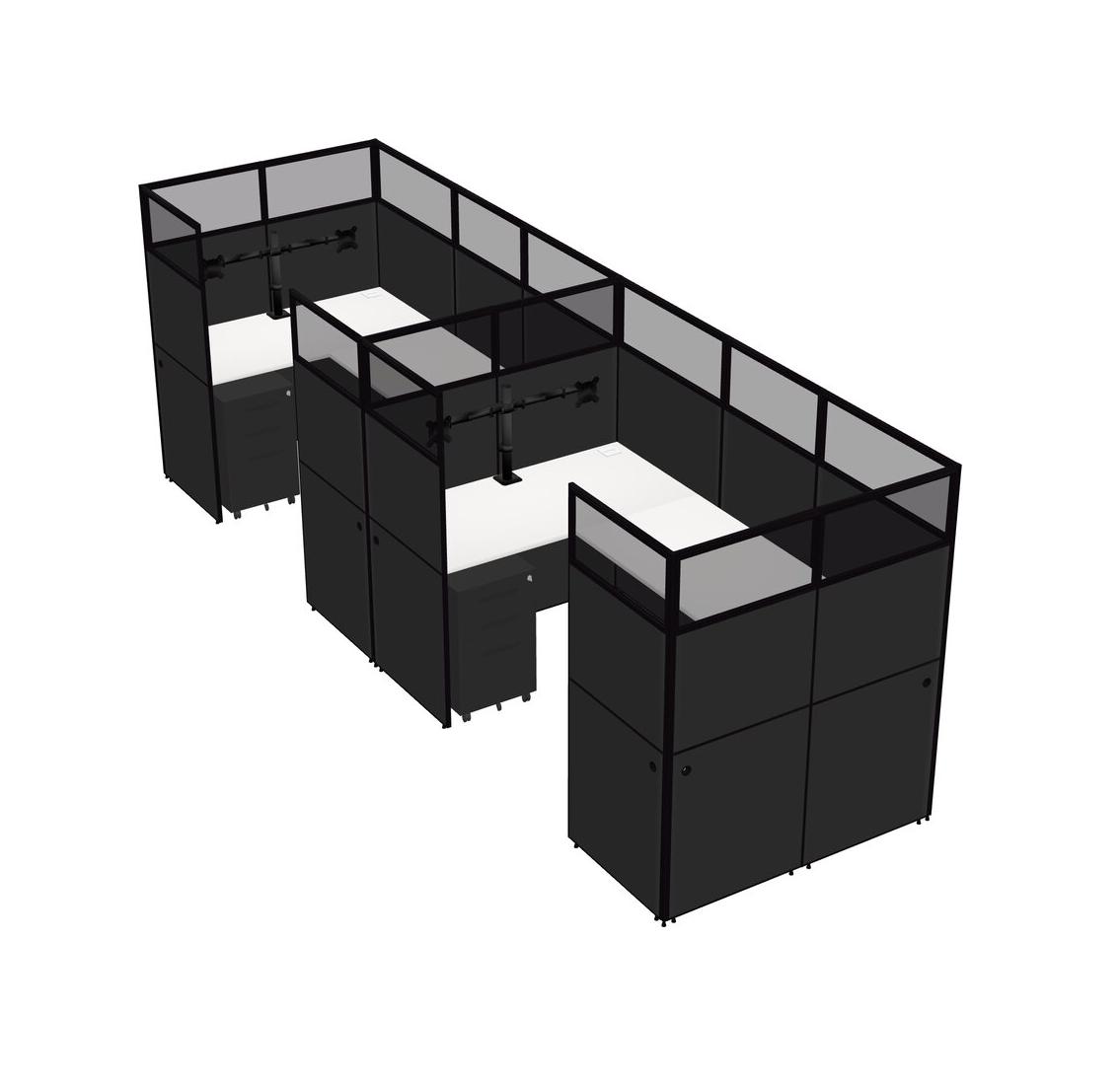 Système De Panneaux En U Blanc Pour 2 Personnes + Bras D'écran (bras Doubles) + Tiroirs Mobiles En Métal Pour 2 Utilisateurs