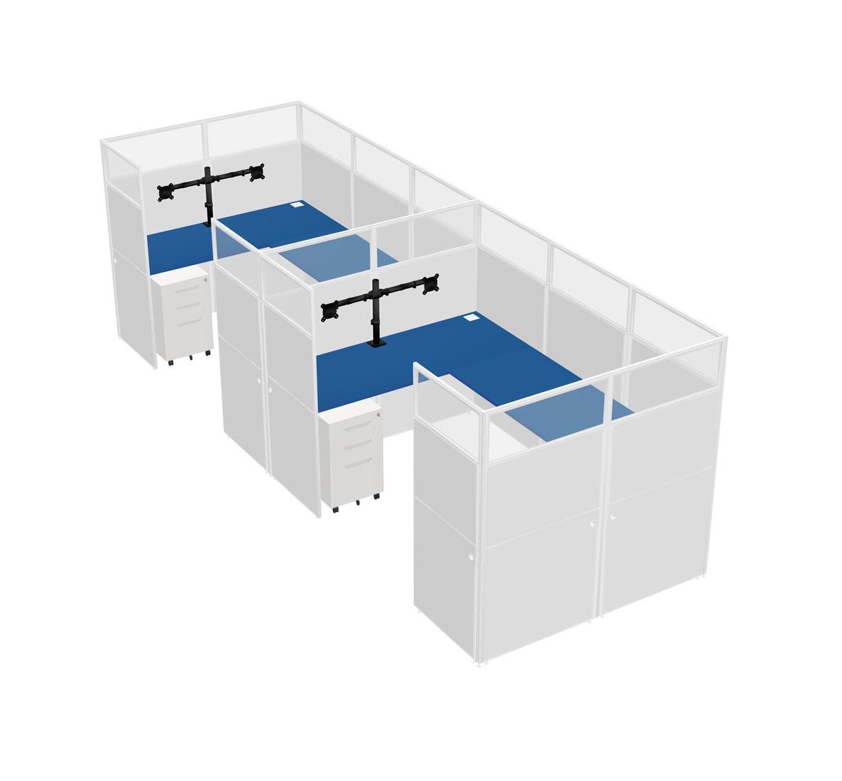 Système De Panneaux En U Prism Blue Pour 2 Personnes + Bras D'écran (bras Doubles) + Tiroirs Mobiles En Métal Pour 2 Utilisateurs