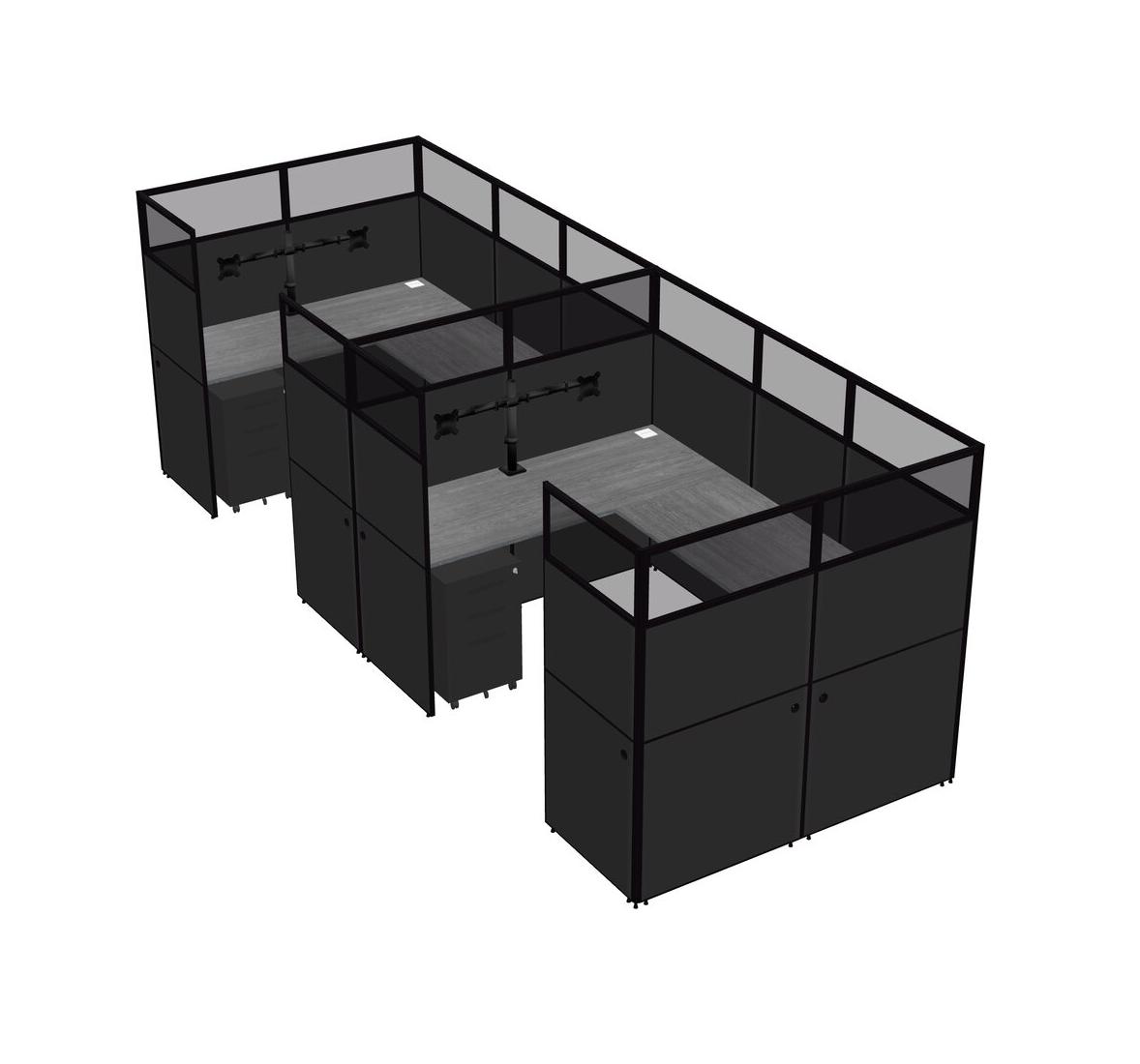 Système De Panneaux En U Gris Pour 2 Personnes + Bras D'écran (bras Doubles) + Tiroirs Mobiles En Métal Pour 2 Utilisateurs