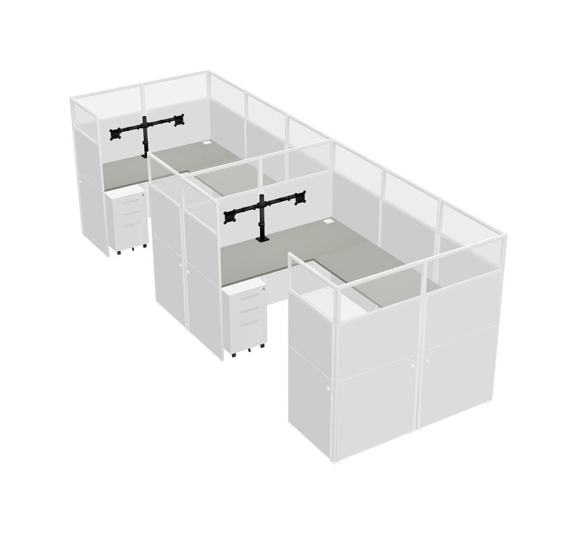 Système De Panneaux En U Grey Shadows Pour 2 Personnes + Bras D'écran (bras Doubles) + Tiroirs Mobiles En Métal Pour 2 Utilisateur(s)