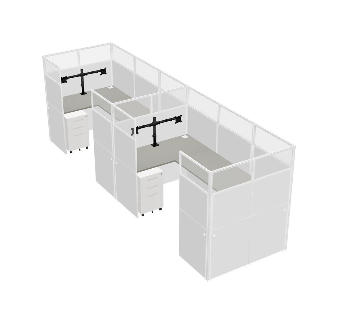 Système De Panneaux En U Grey Shadows Pour 2 Personnes + Bras D'écran (bras Doubles) + Tiroirs Mobiles En Métal Pour 2 Utilisateur(s)