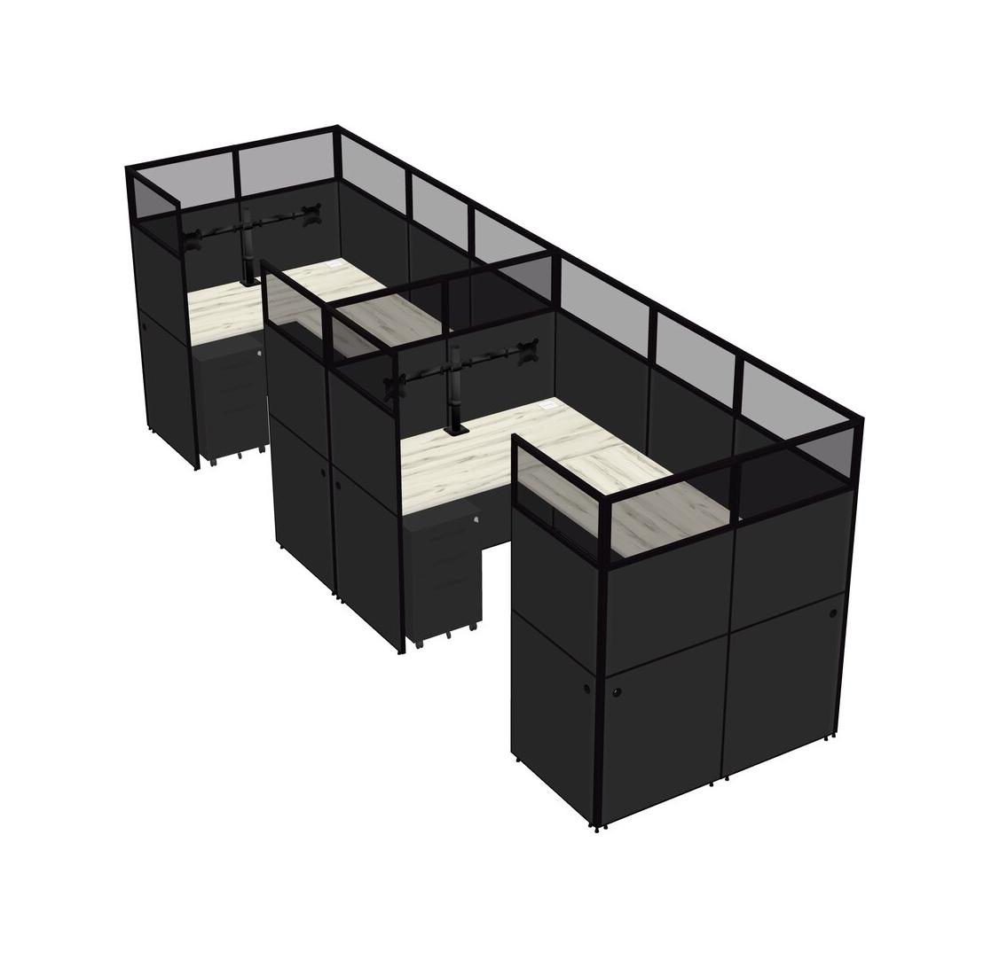 Système De Panneaux En U Heinne Holz Pour 2 Personnes + Bras D'écran (bras Doubles) + Tiroirs Mobiles En Métal Pour 2 Utilisateur(s)